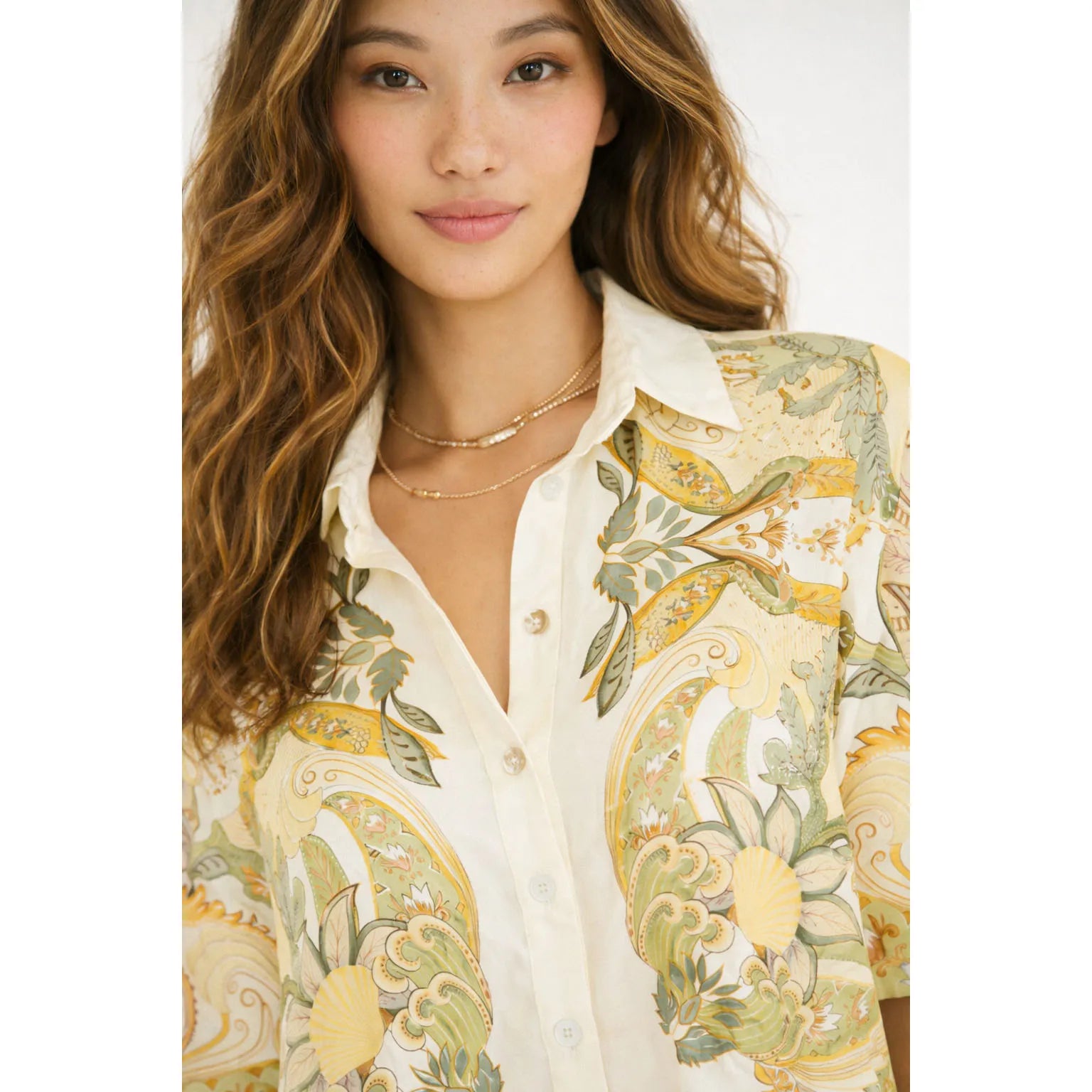 Descubra o charme e a sofisticação da Camisa Farm Manga Curta Jardim De Mar, perfeita para quem busca estilo e conforto em um só item. Com estampa exclusiva que remete ao encontro do jardim com o mar, essa camisa traz cores suaves como amarelo, verde e bege, que harmonizam com qualquer look casual ou elegante.