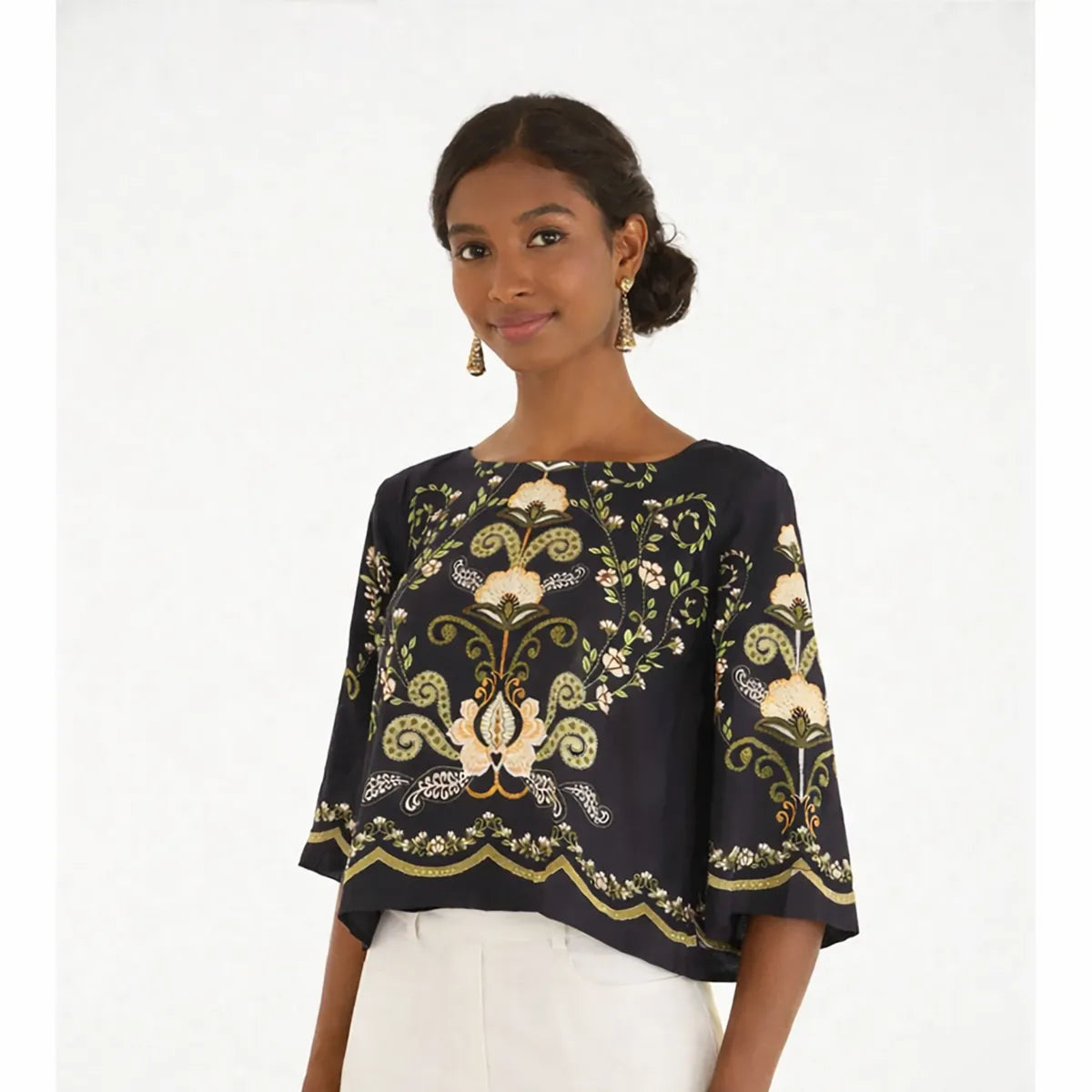 Transforme seu visual com a blusa estampada Farm Nikita, uma peça sofisticada que une conforto e estilo único. Confeccionada em...