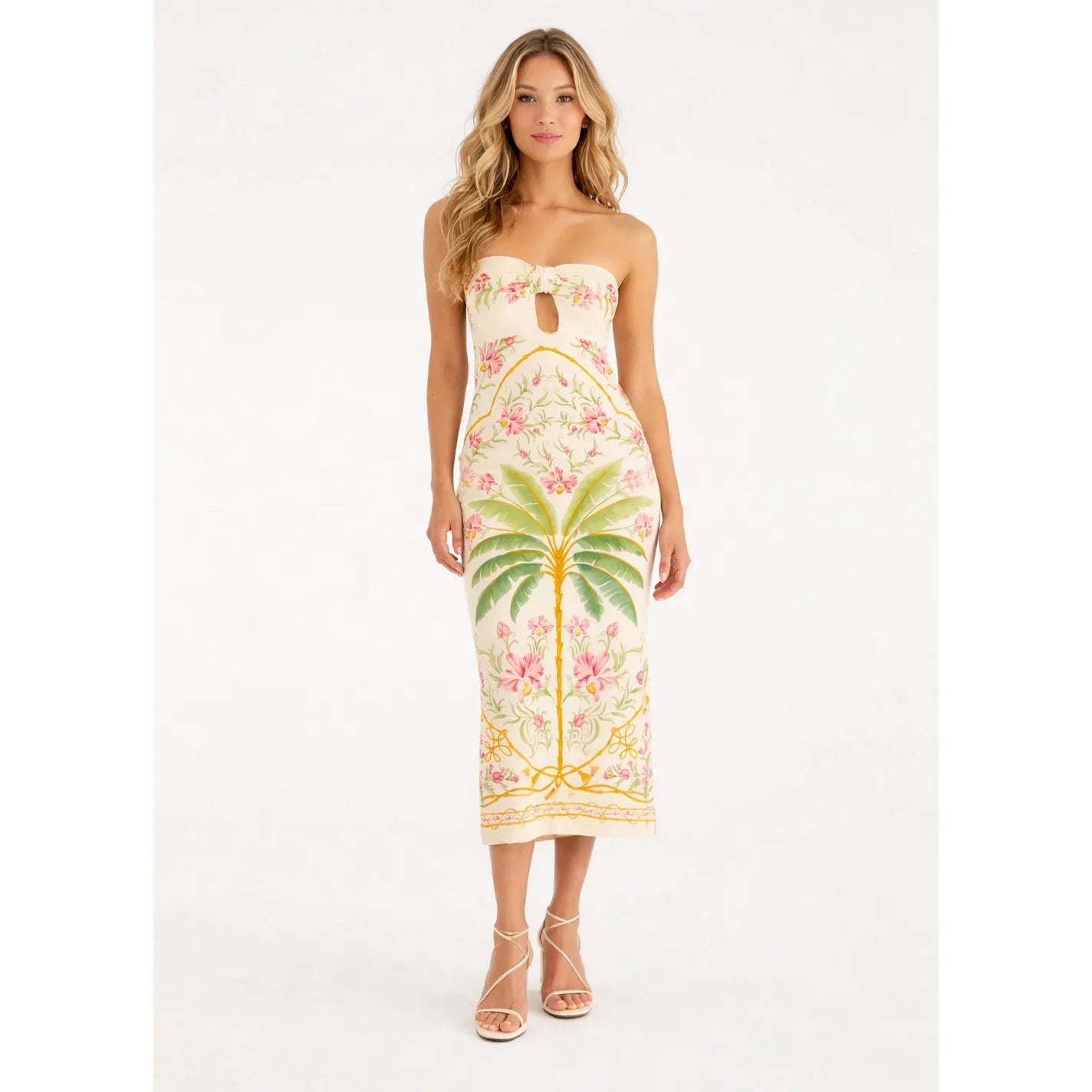 Vestido Farm Midi Sem Alça Floral Nusa