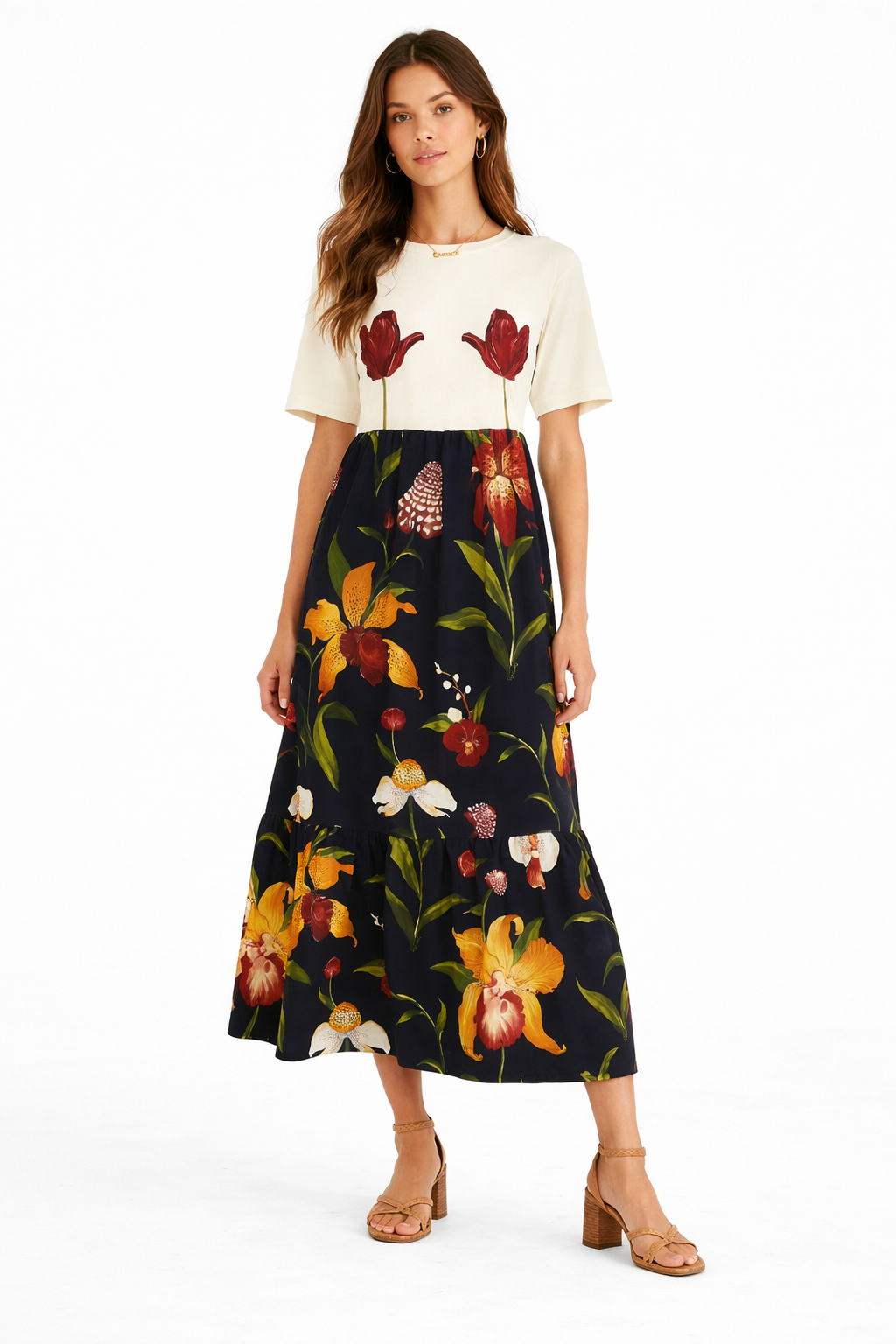 Descubra o Vestido Farm Midi Selva de Flor: uma peça única que une conforto e estilo com uma estampa floral...