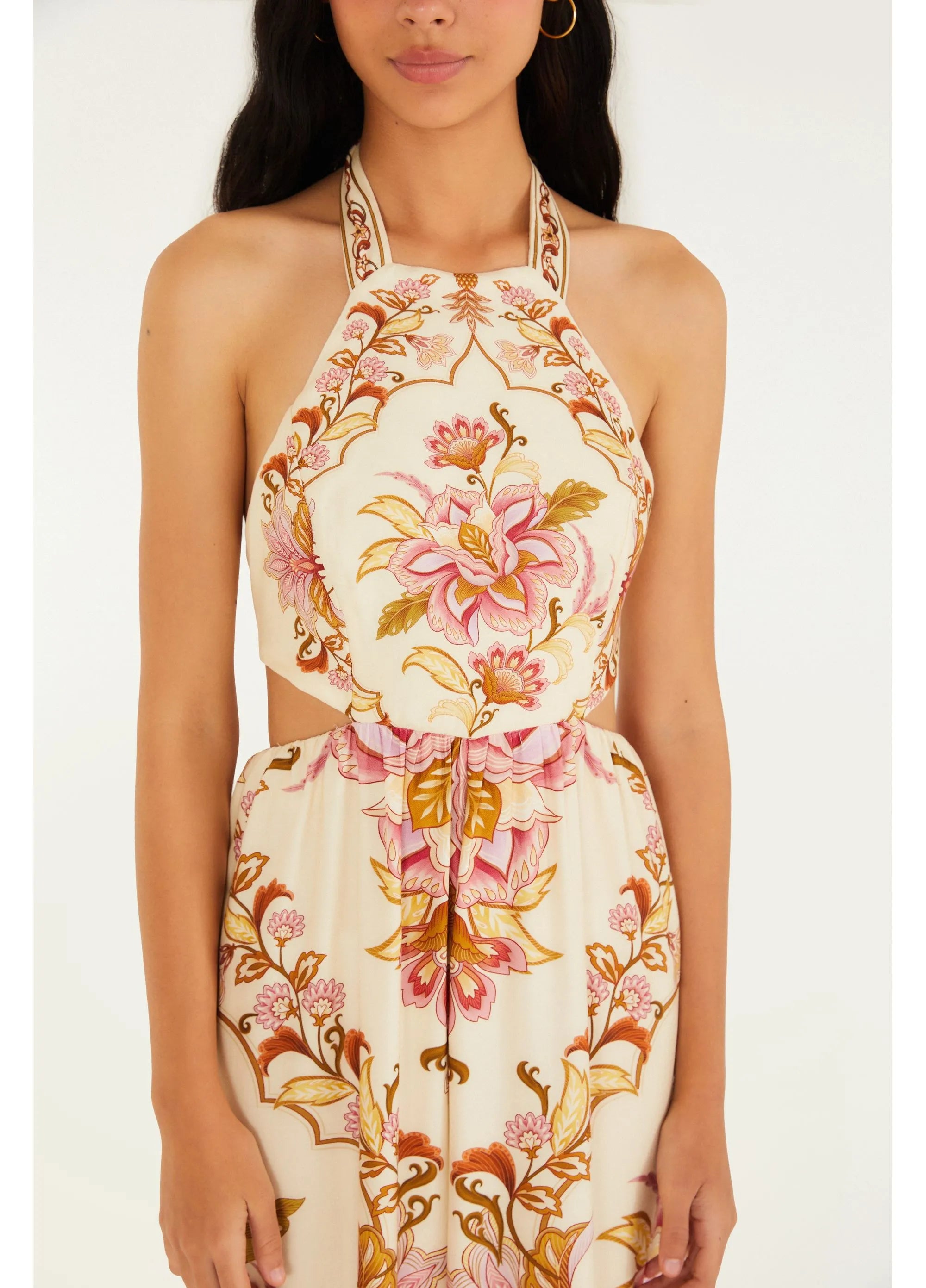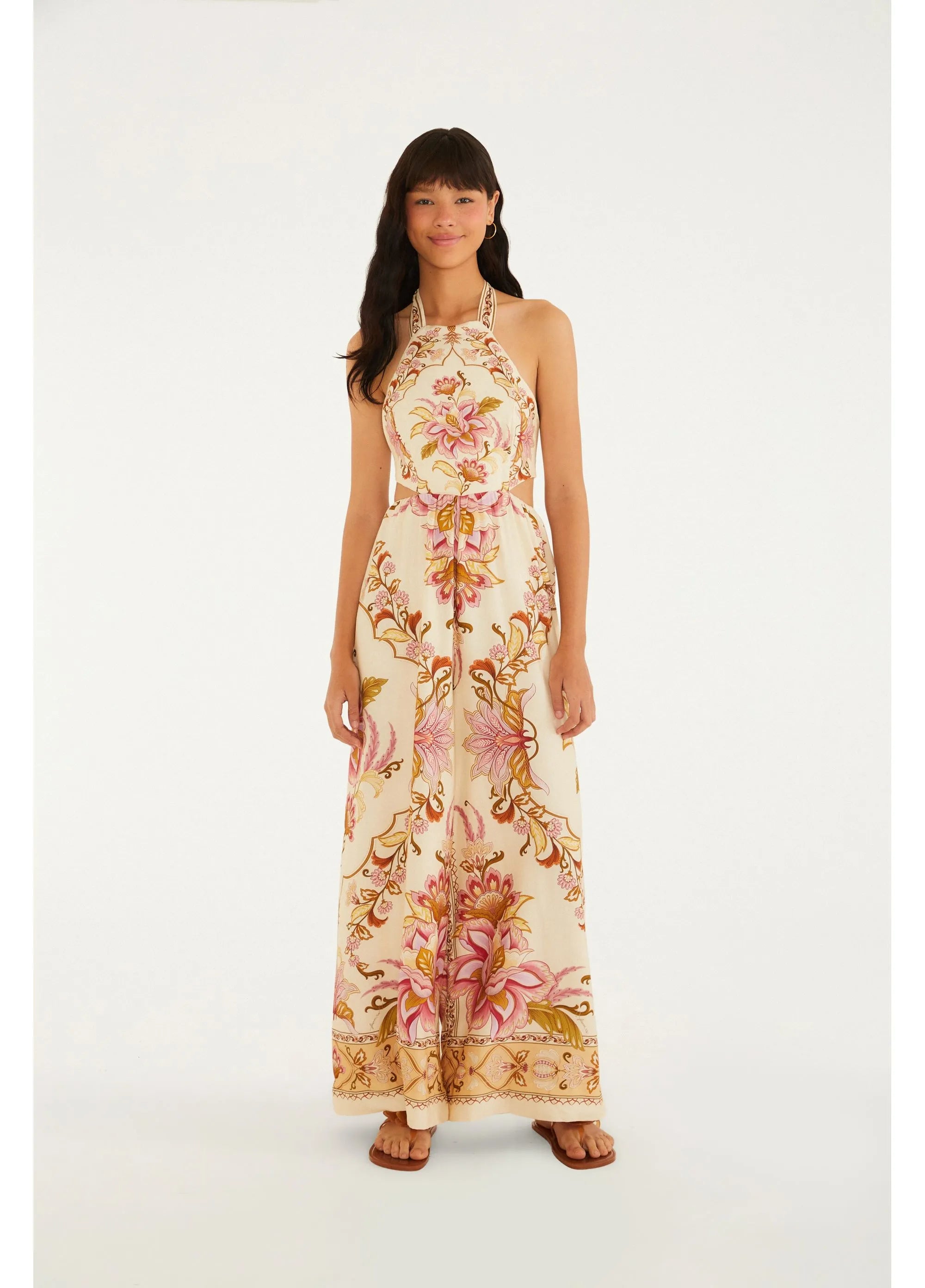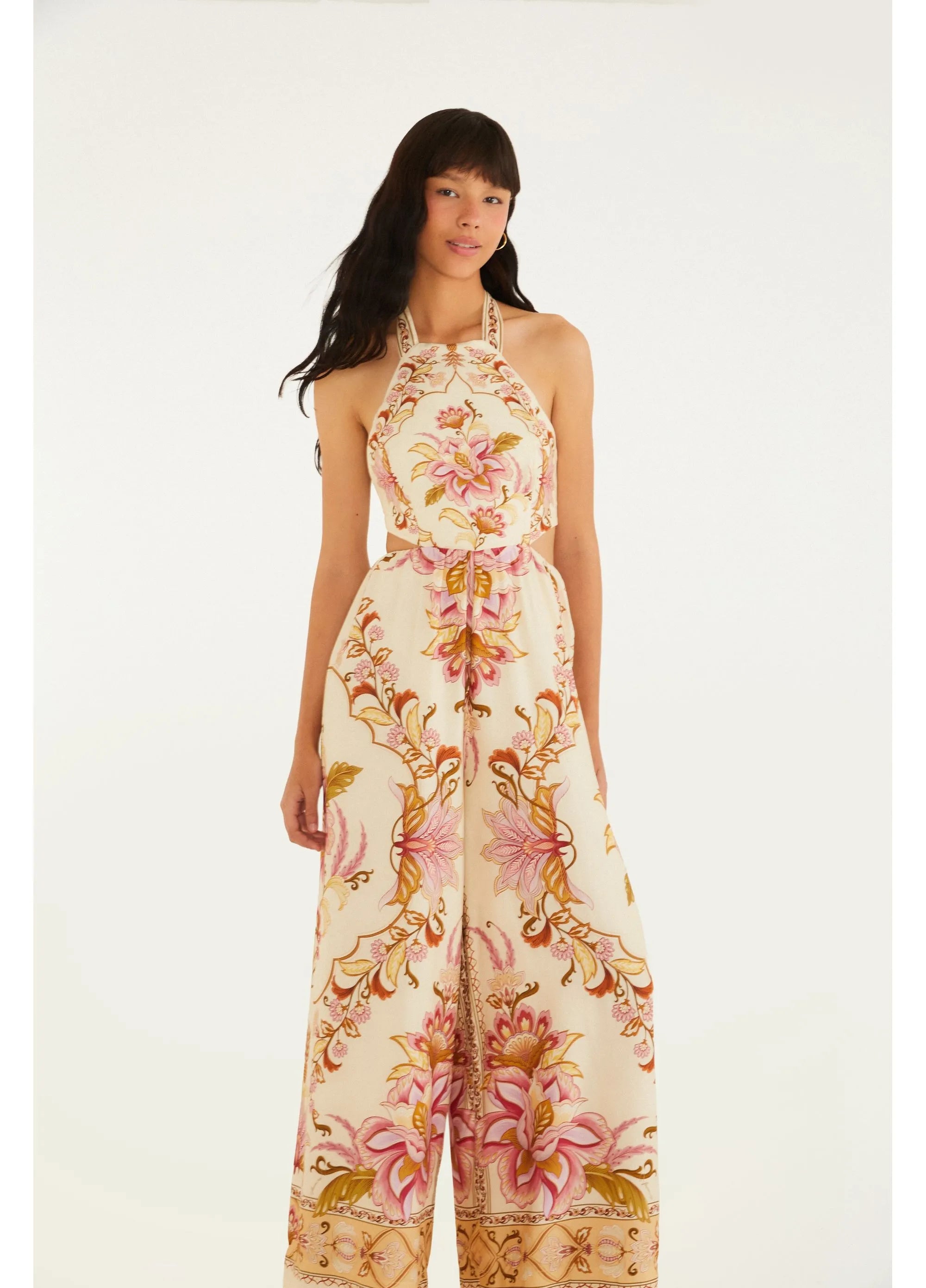 MACACAO FARM BEGE Cor: BEGE Referência: 346205 macacão estampado jardim majestoso. com um charmoso decote halter e alças finas, este...
