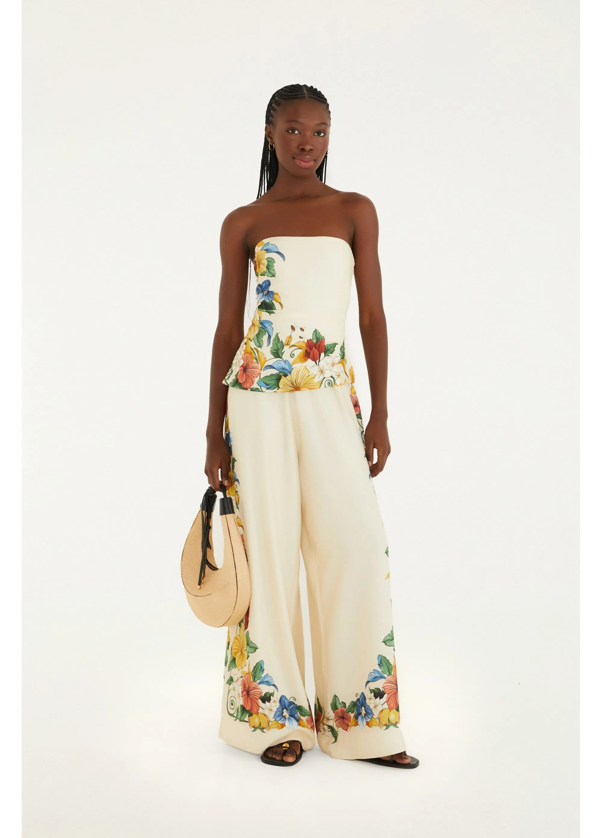 MACACAO FARM SEM ALCAS ESTAMPADO TROPICALZINHO Cor: BEGE Referência: 347881 macacão sem alças estampado tropicalzinho lenço. com decote reto e...