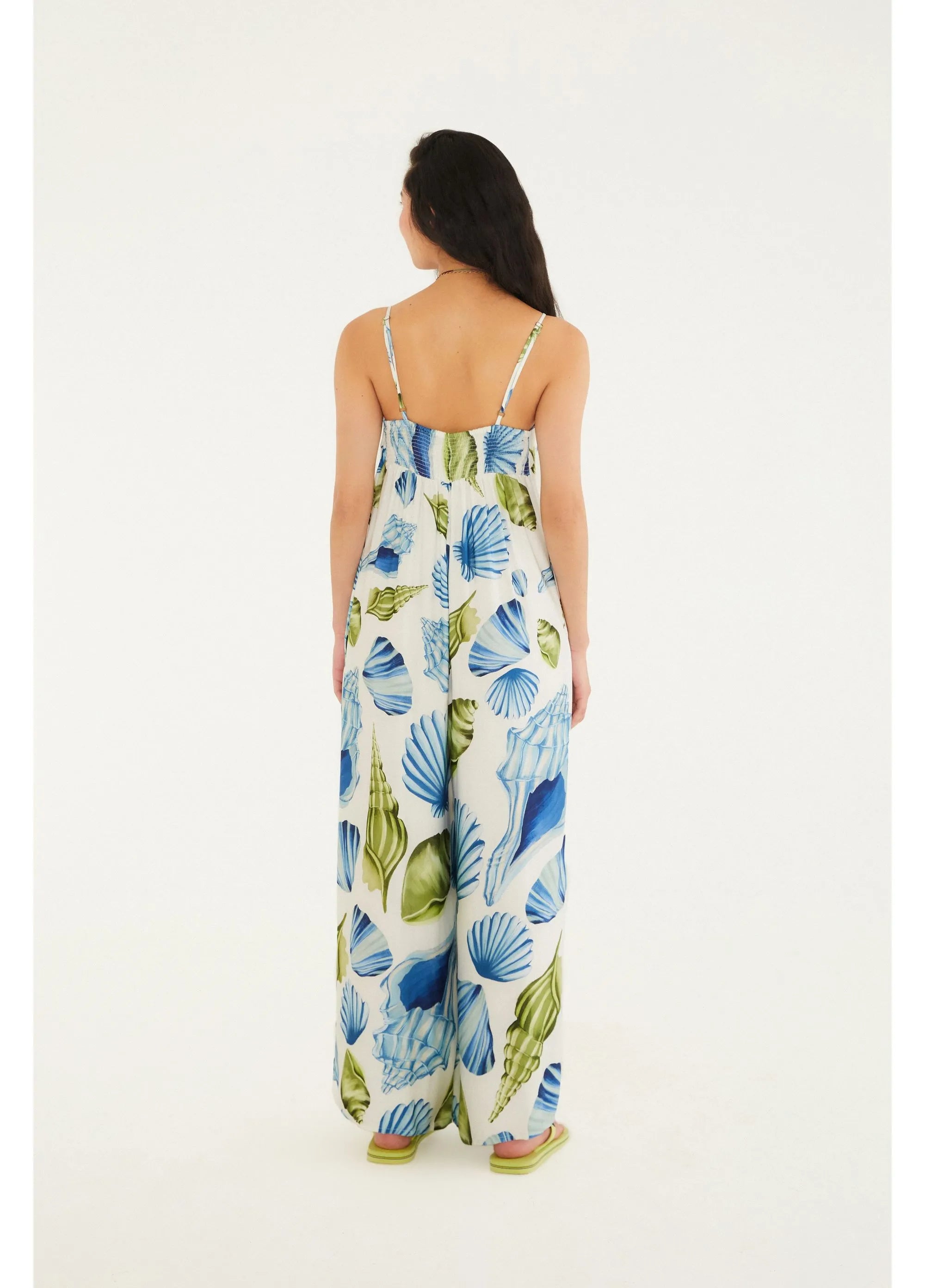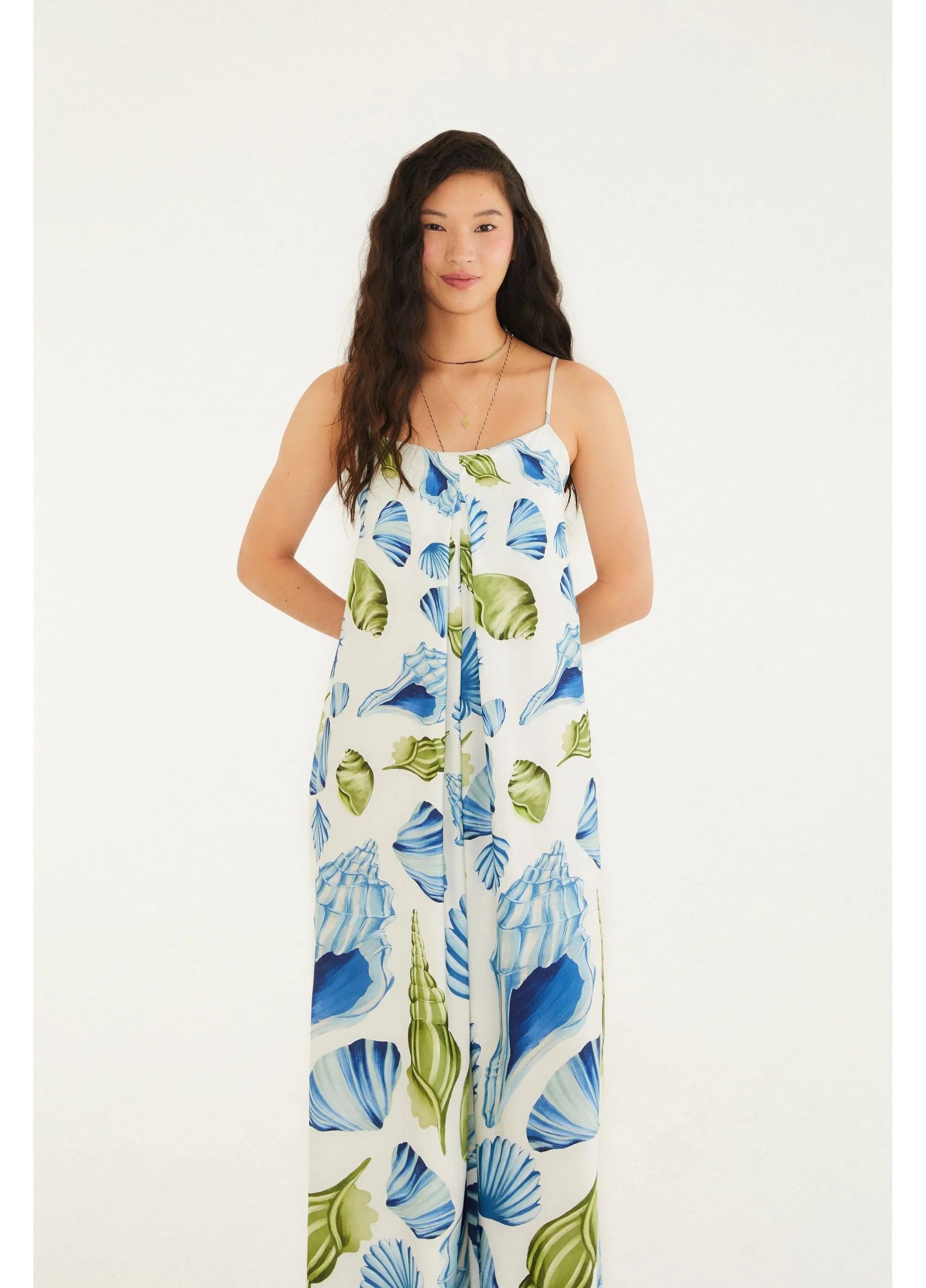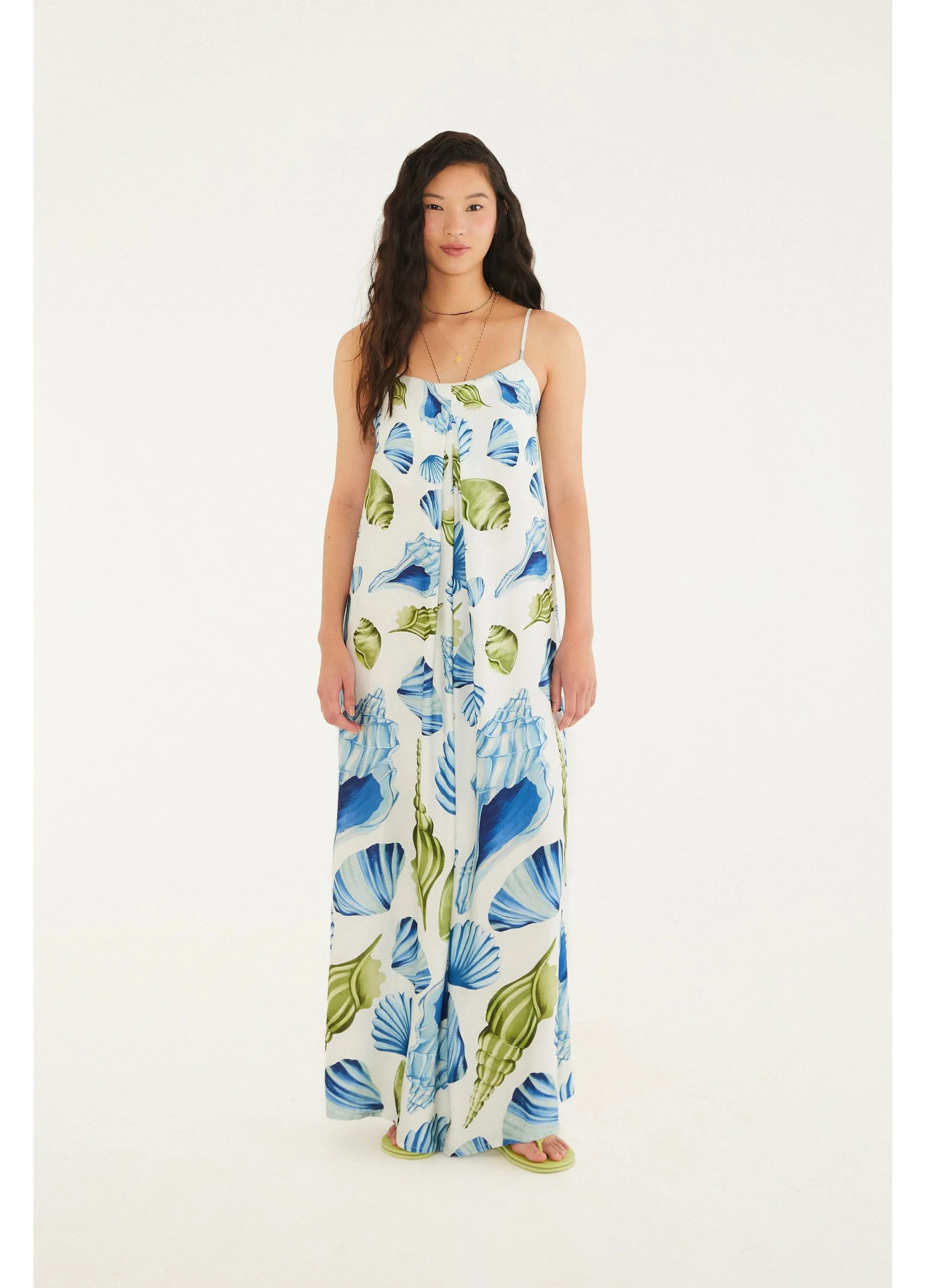MACACAO FARM LONGO ESTAMPADO CONCHA LITORAL Cor: OFF WHITE Referência: 350142 macacão longo estampado concha litoral. com alças finas e...