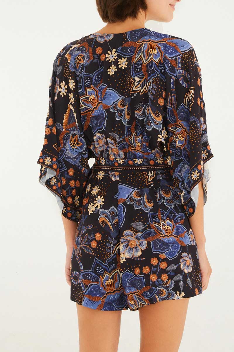 Mergulhe na essência do estilo rural com este macaquinho farm que domina a noite. A estampa Noite Florida traz um...