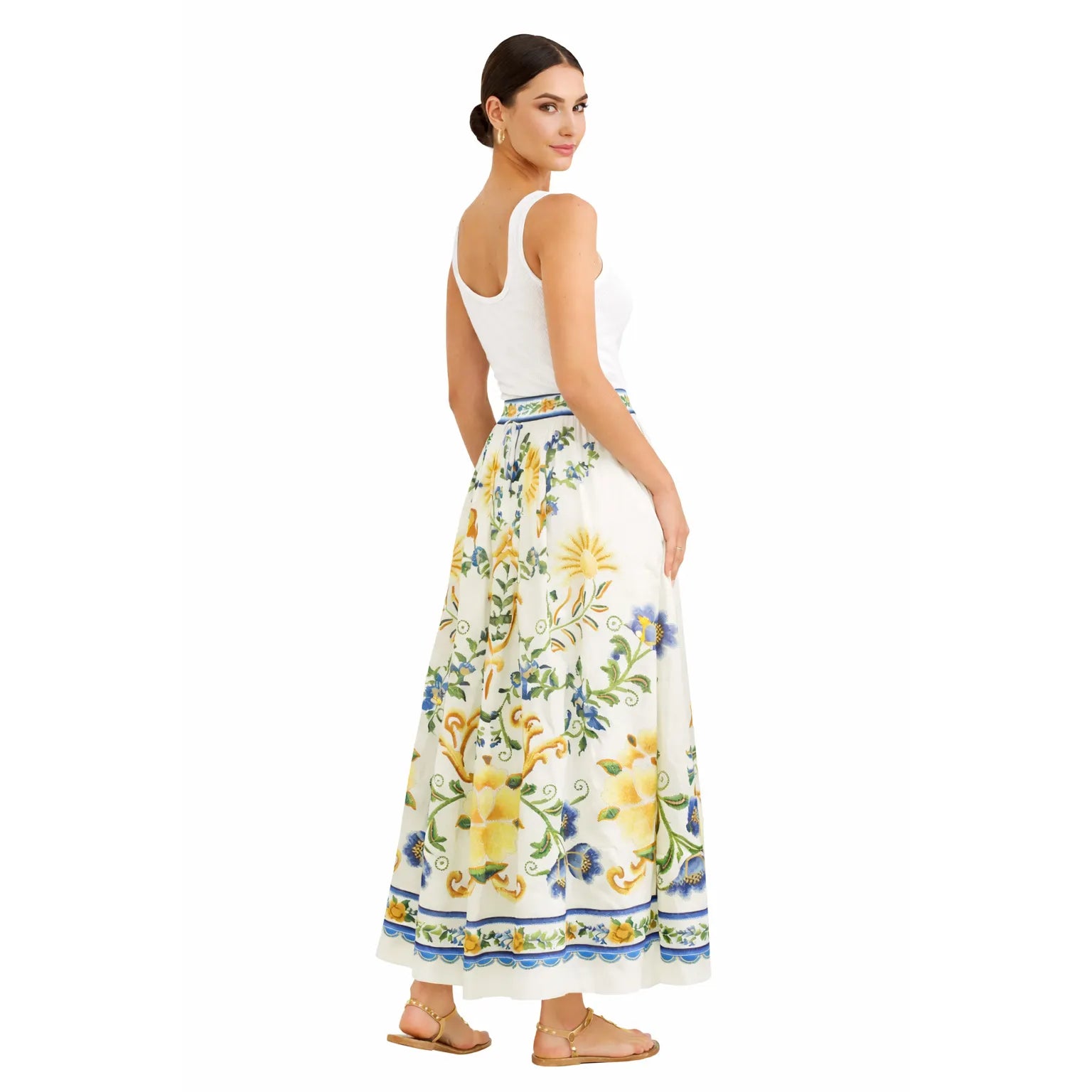 SAIA FARM ESTAMPADA FLORAL EMÍLIA Cor: OFF WHITE Referência: 352046 saia estampada floral emília. esta peça traz um corte fluido...