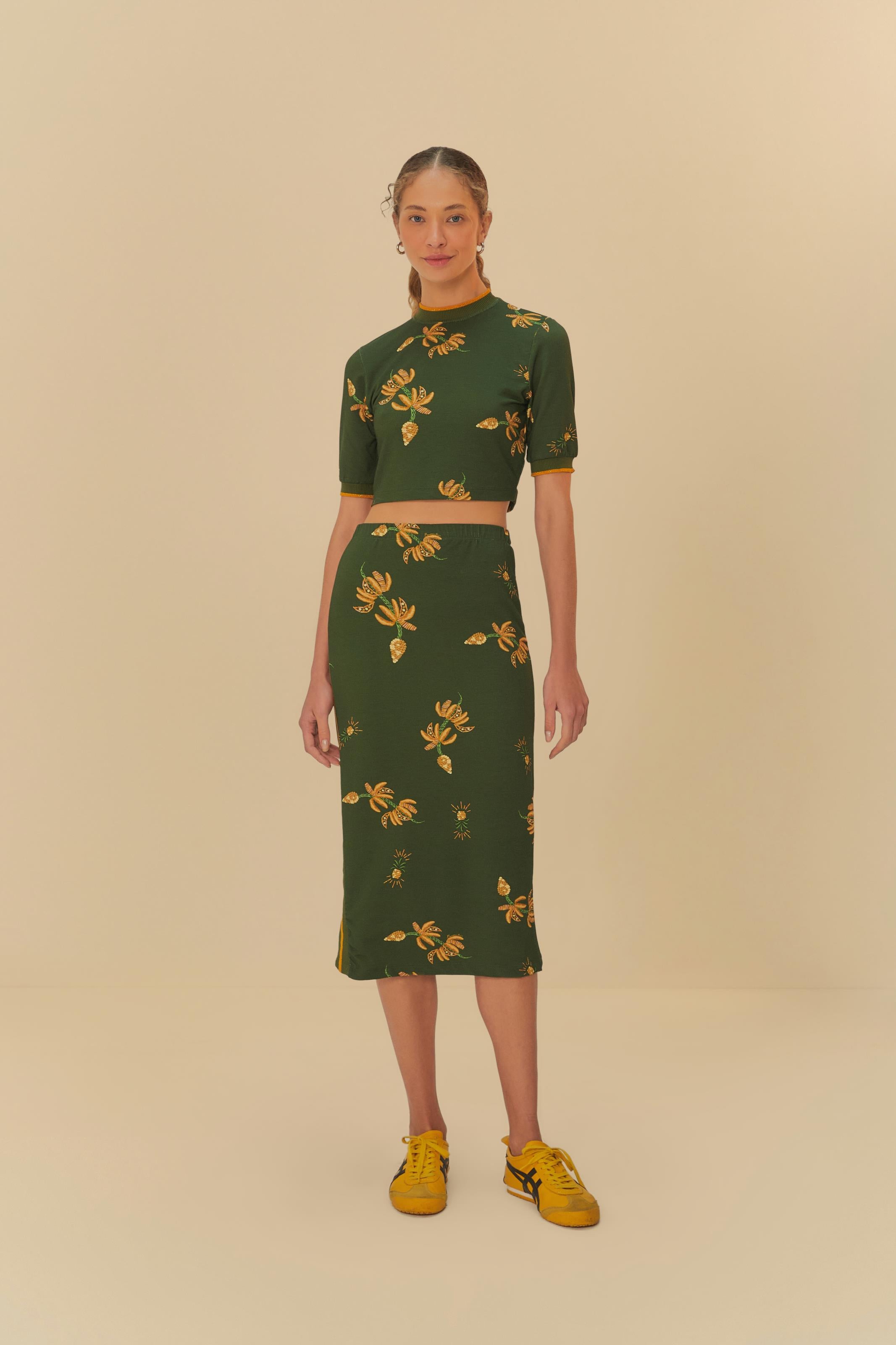 SAIA FARM MIDI ESTAMPADA BRILHO DE BANANA