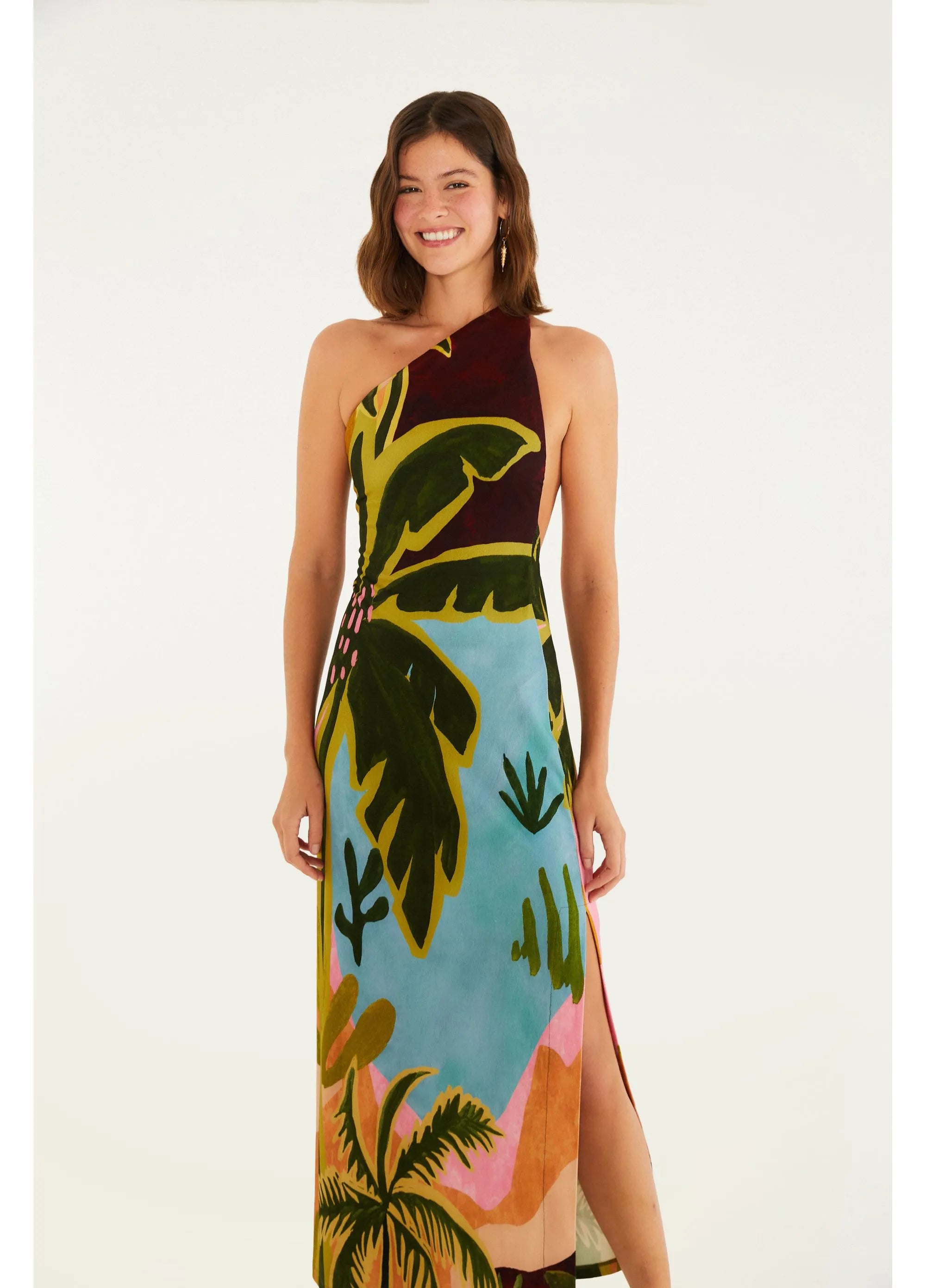 VESTIDO FARM OMBRO SO ESTAMPADO JARDIM BURBURINHO