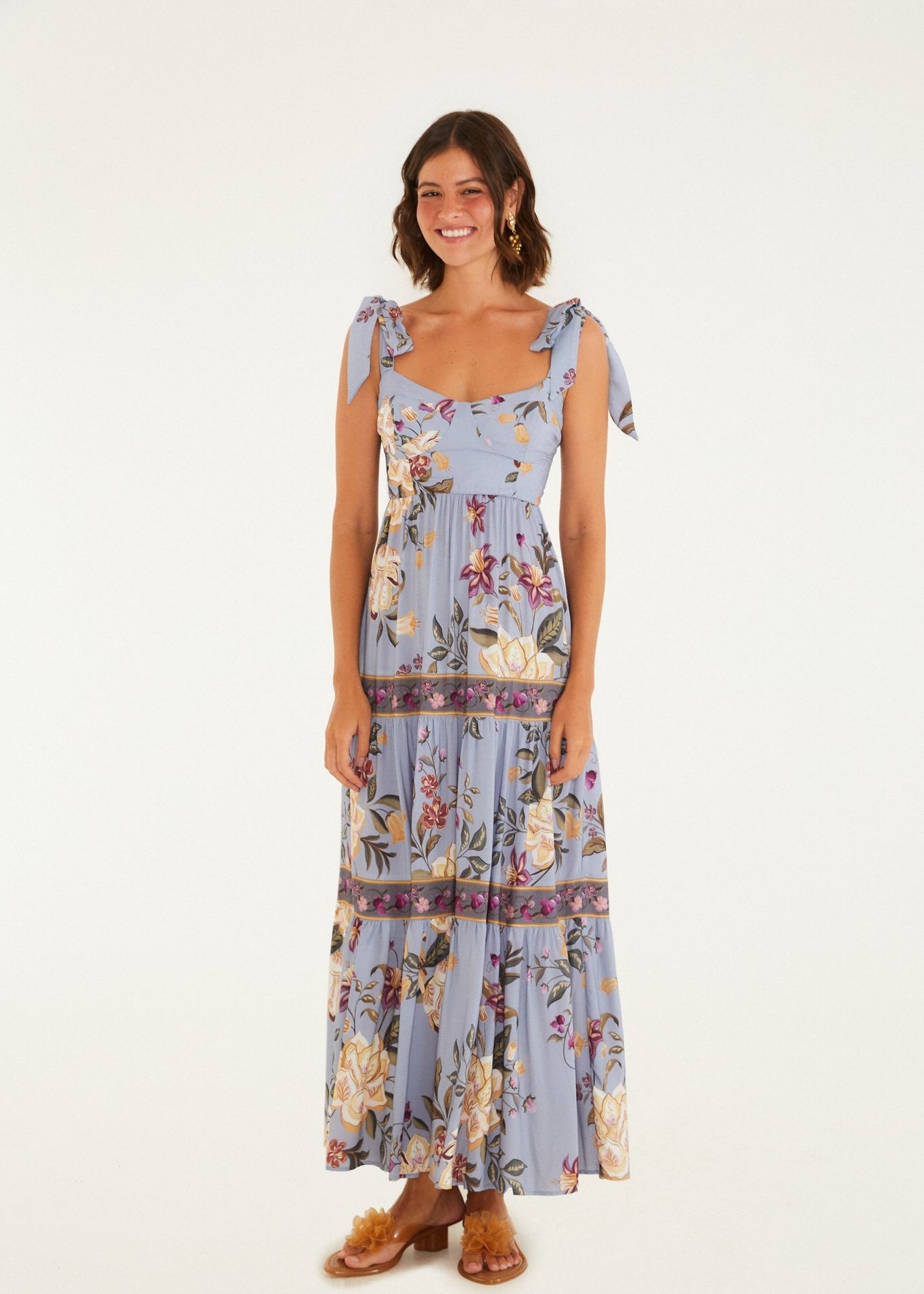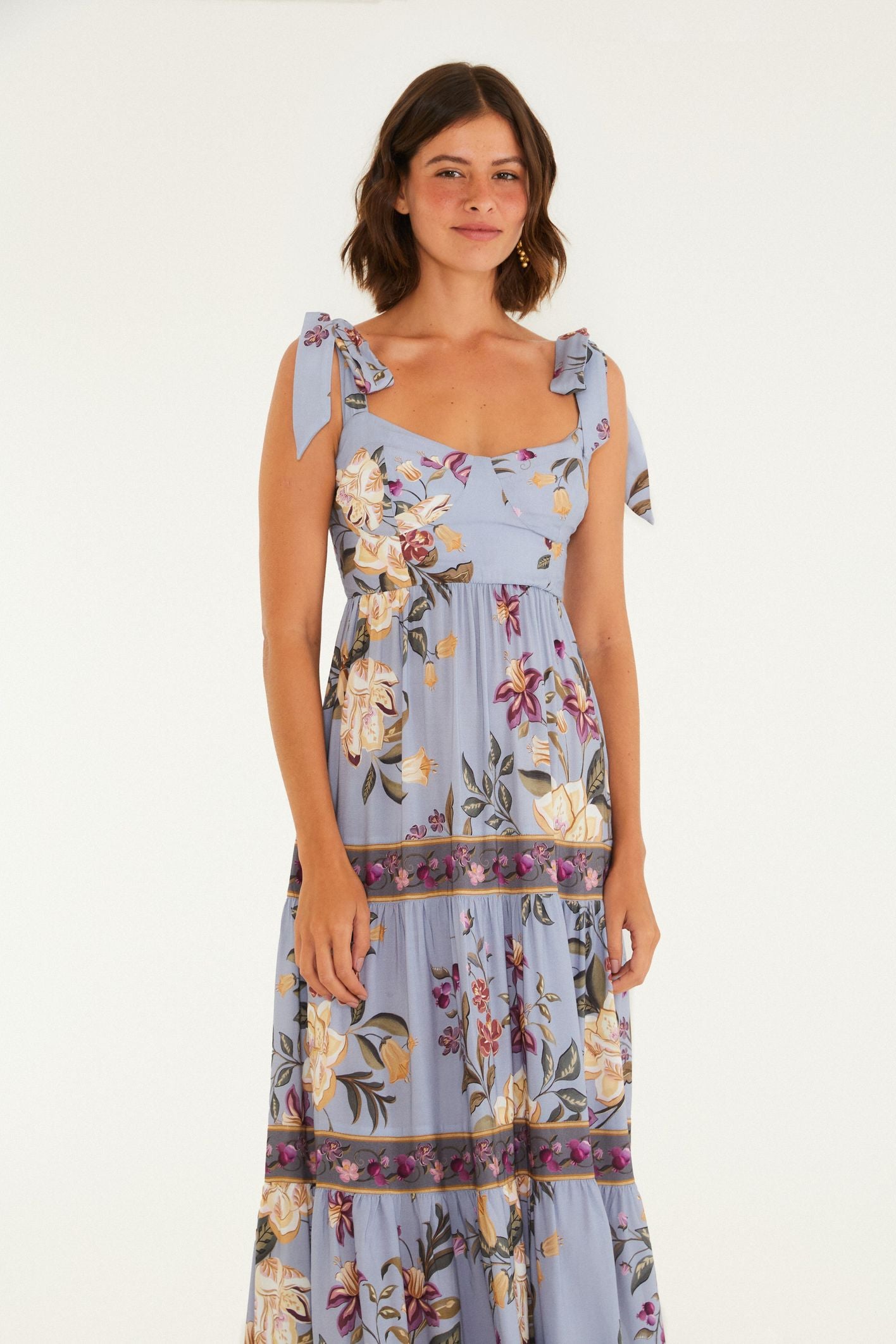 VESTIDO FARM CROPPED ESTAMPADO FLORAL BEATRIZ Cor: AZUL Referência: 345563 vestido cropped estampado floral beatriz. com alças finas e decote...