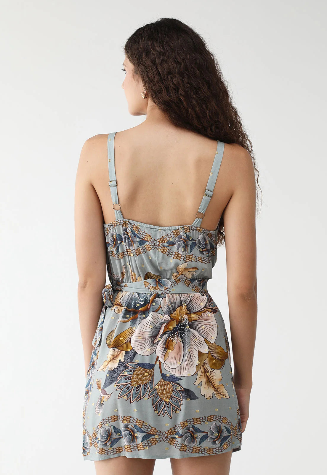 VESTIDO FARM CURTO LENÇO JARDIM REAL Cor: AZUL CLARO Referência: 341347