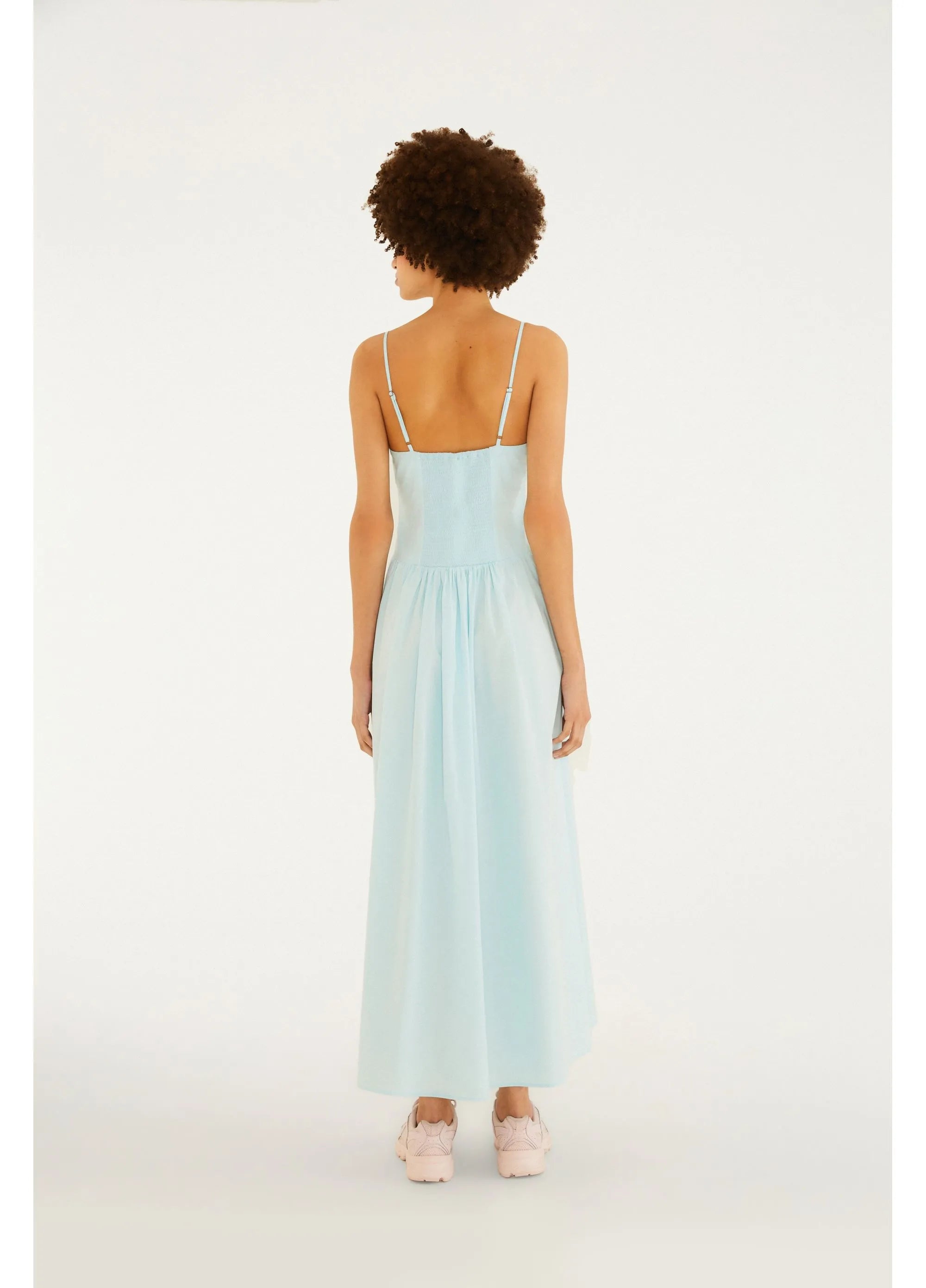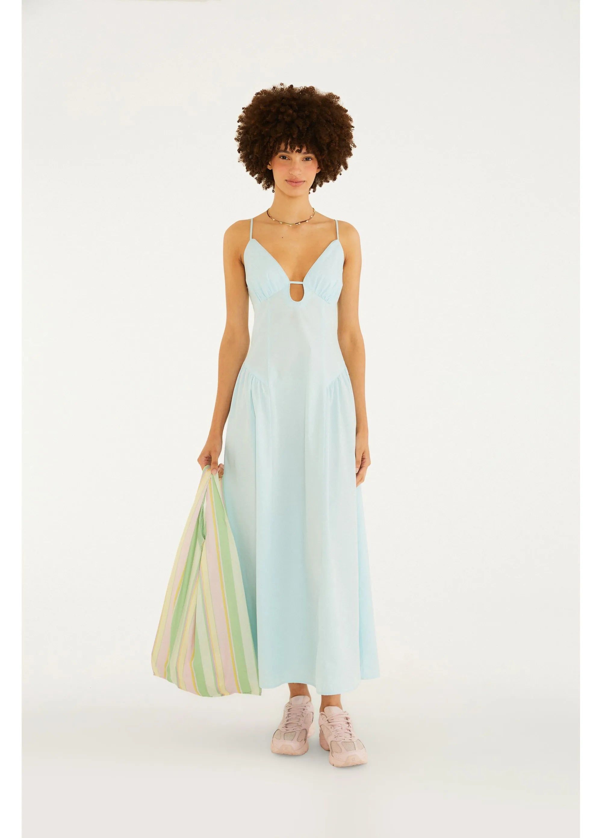 VESTIDO FARM ALCINHAS DECOTE AZUL CLARO