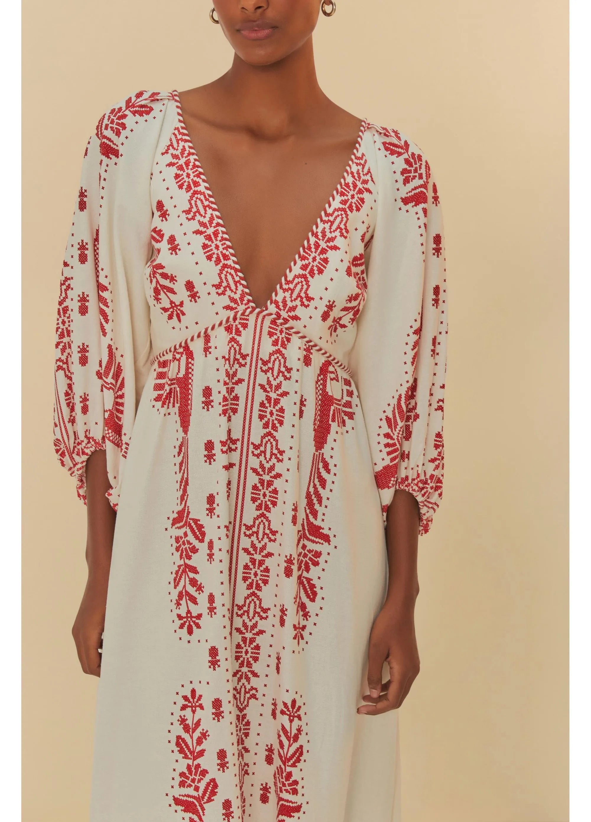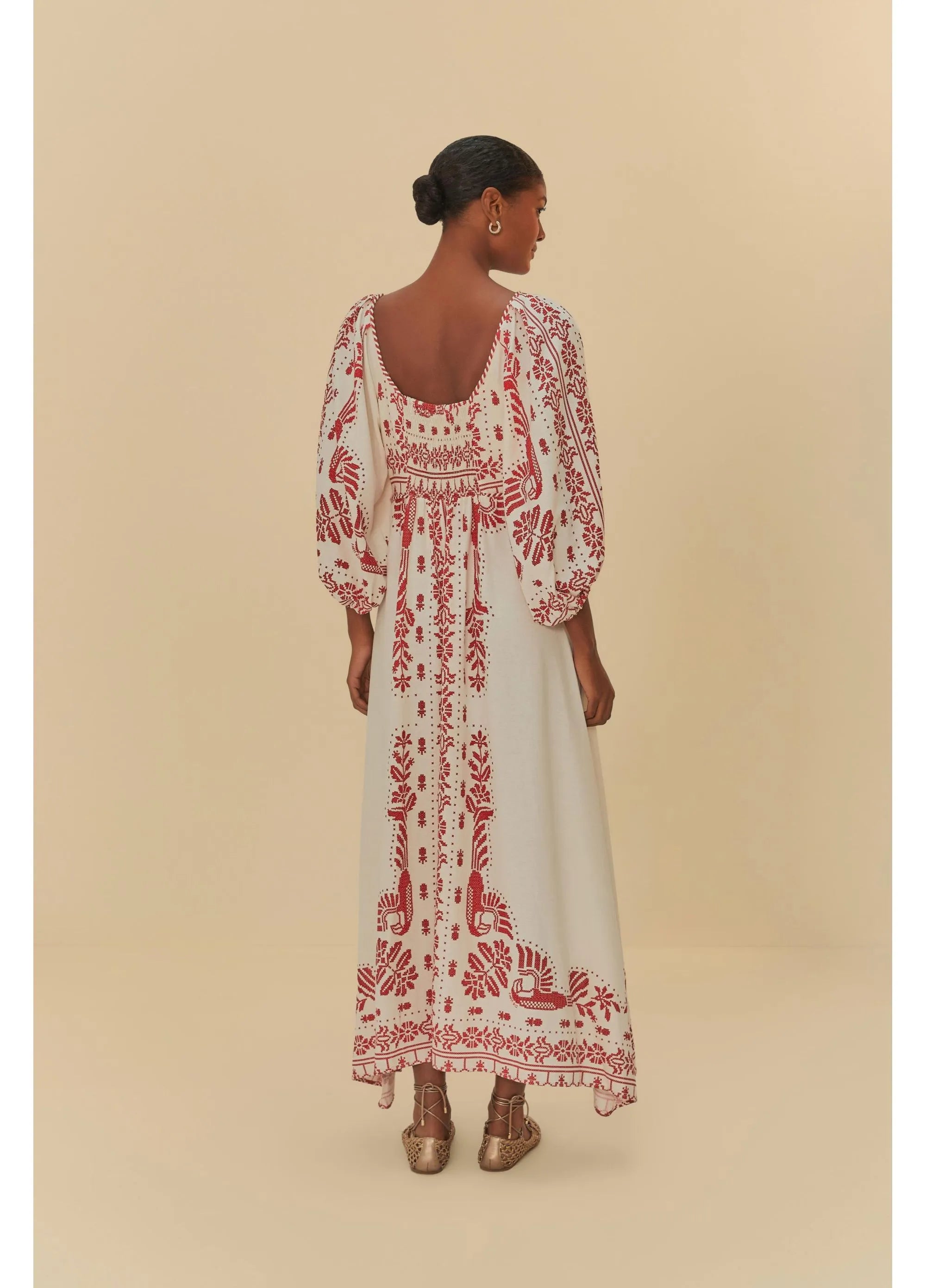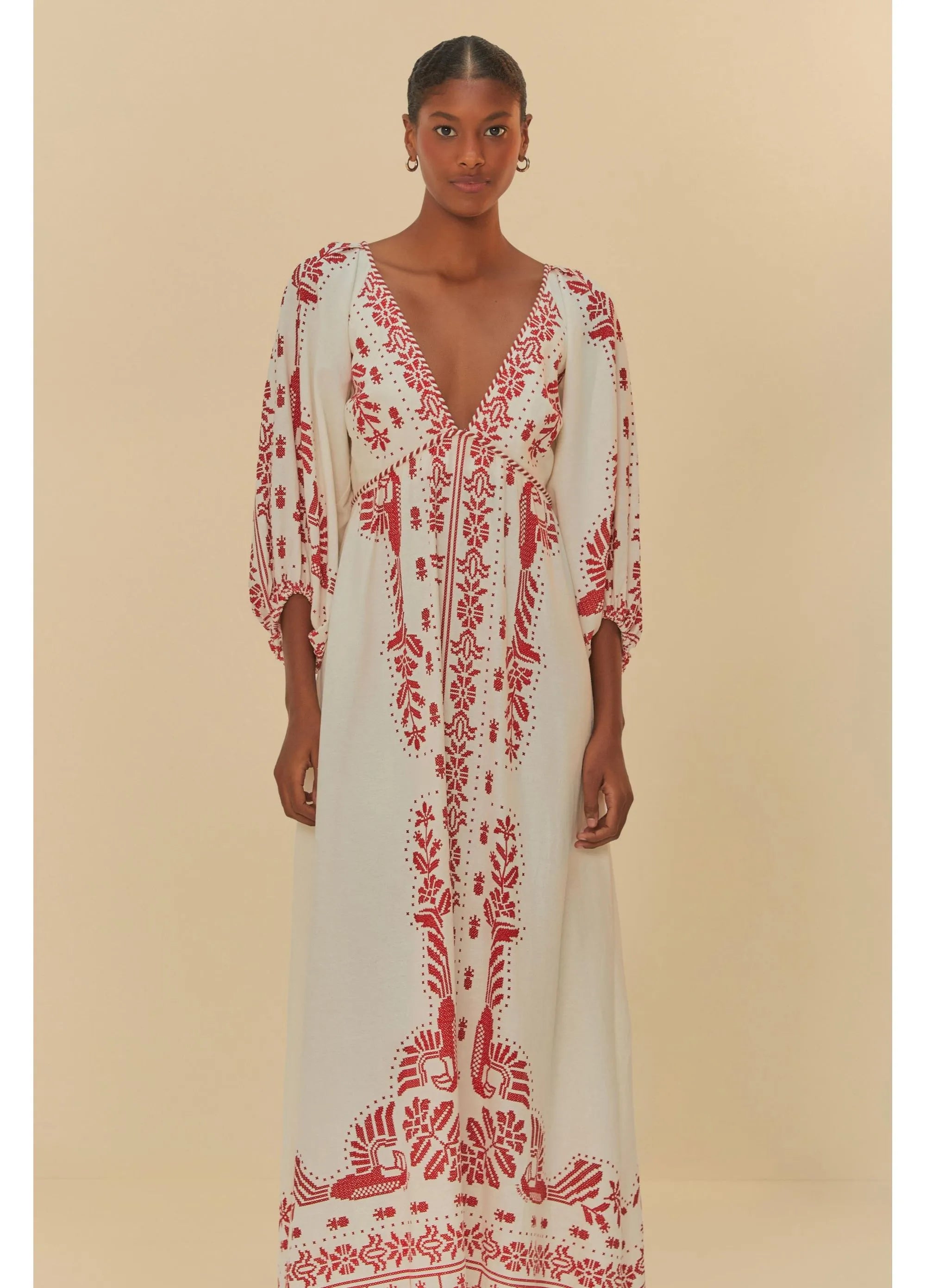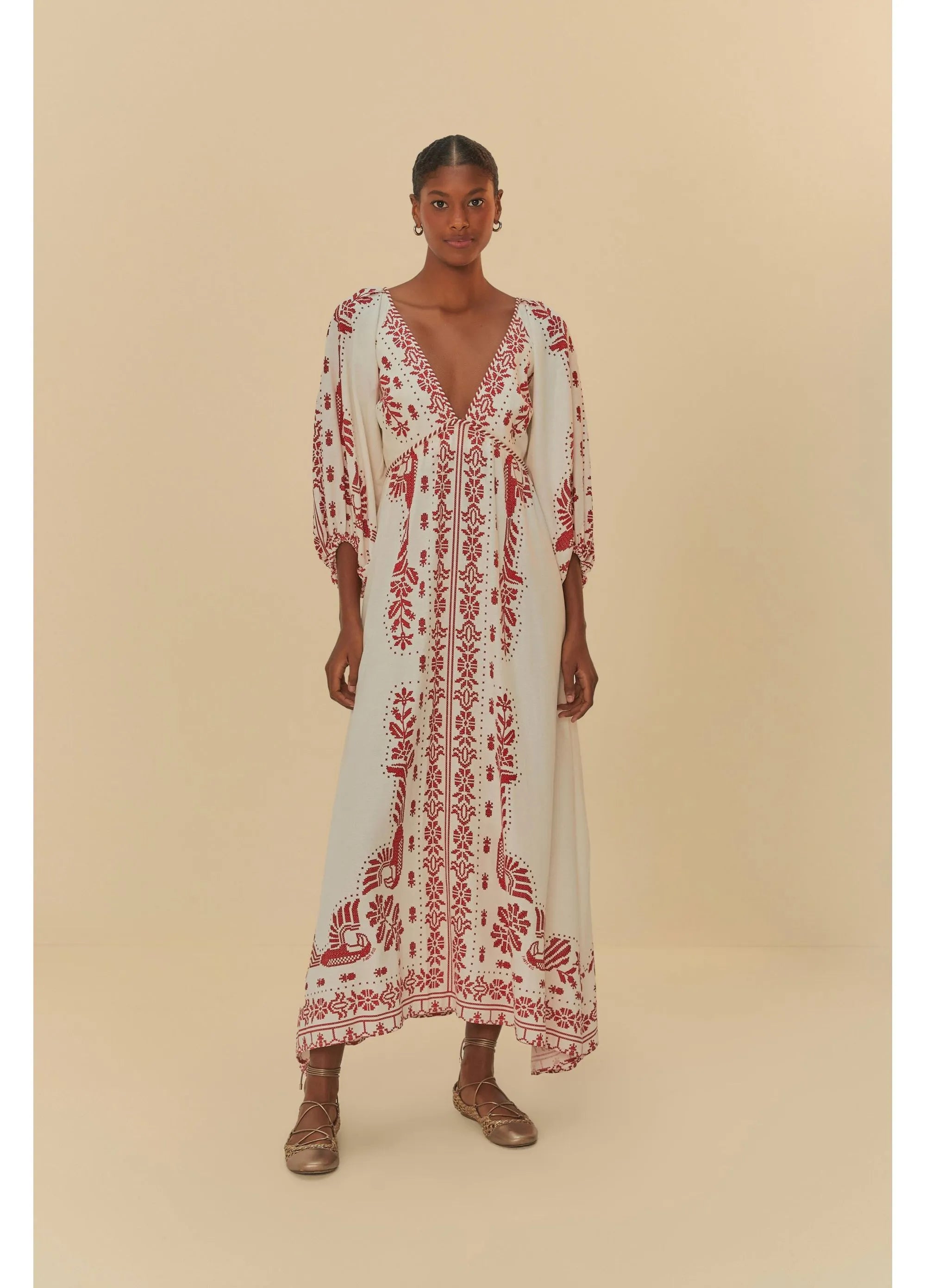 VESTIDO FARM LONGO ESTAMPADO RELICÁRIO TROPICAL