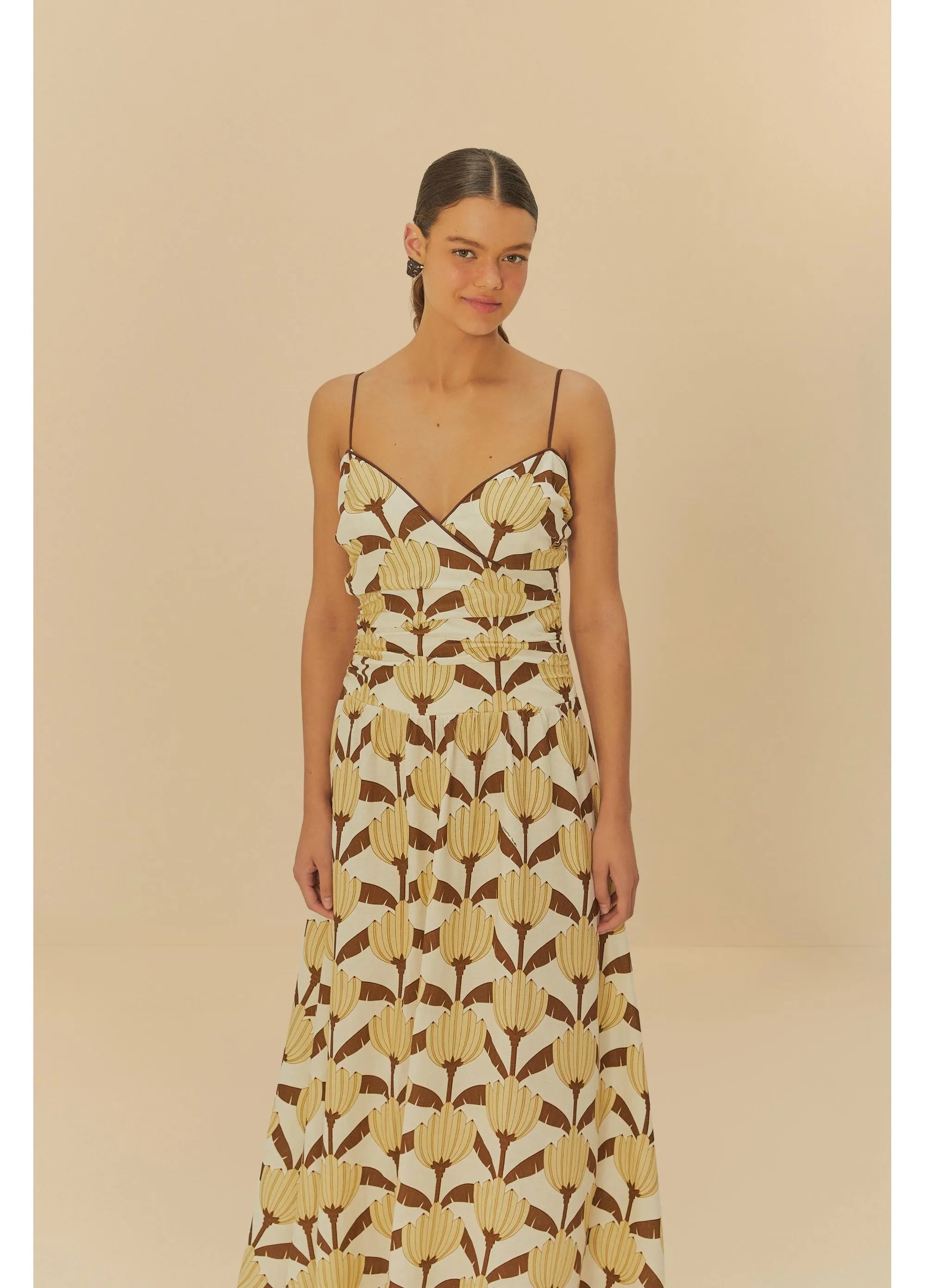 VESTIDO FARM CROPPED ESTAMPADO BANANA DECO Cor: OFF WHITE Referência: 337997 vestido cropped banana deco. com alças finas ajustáveis e...