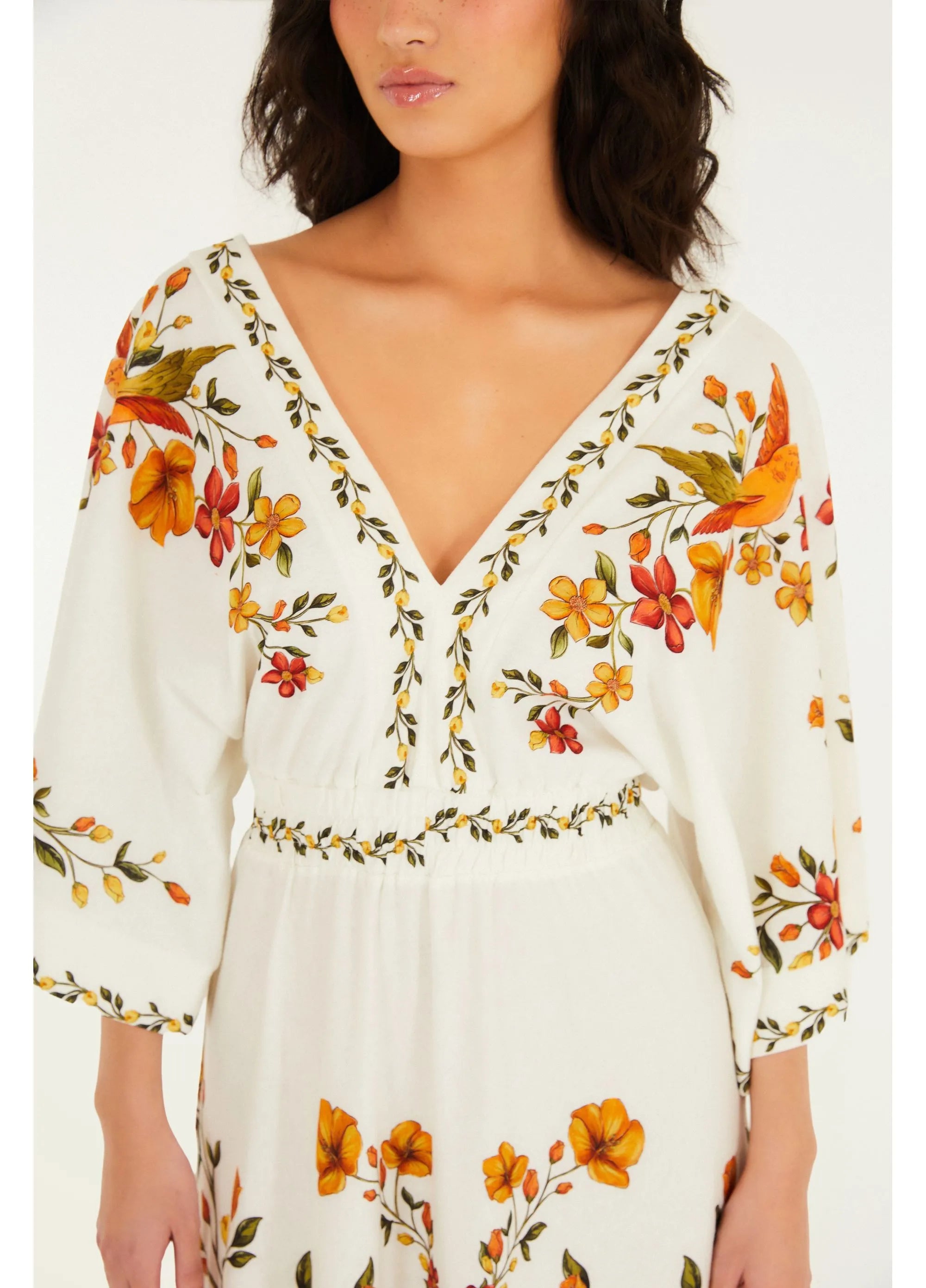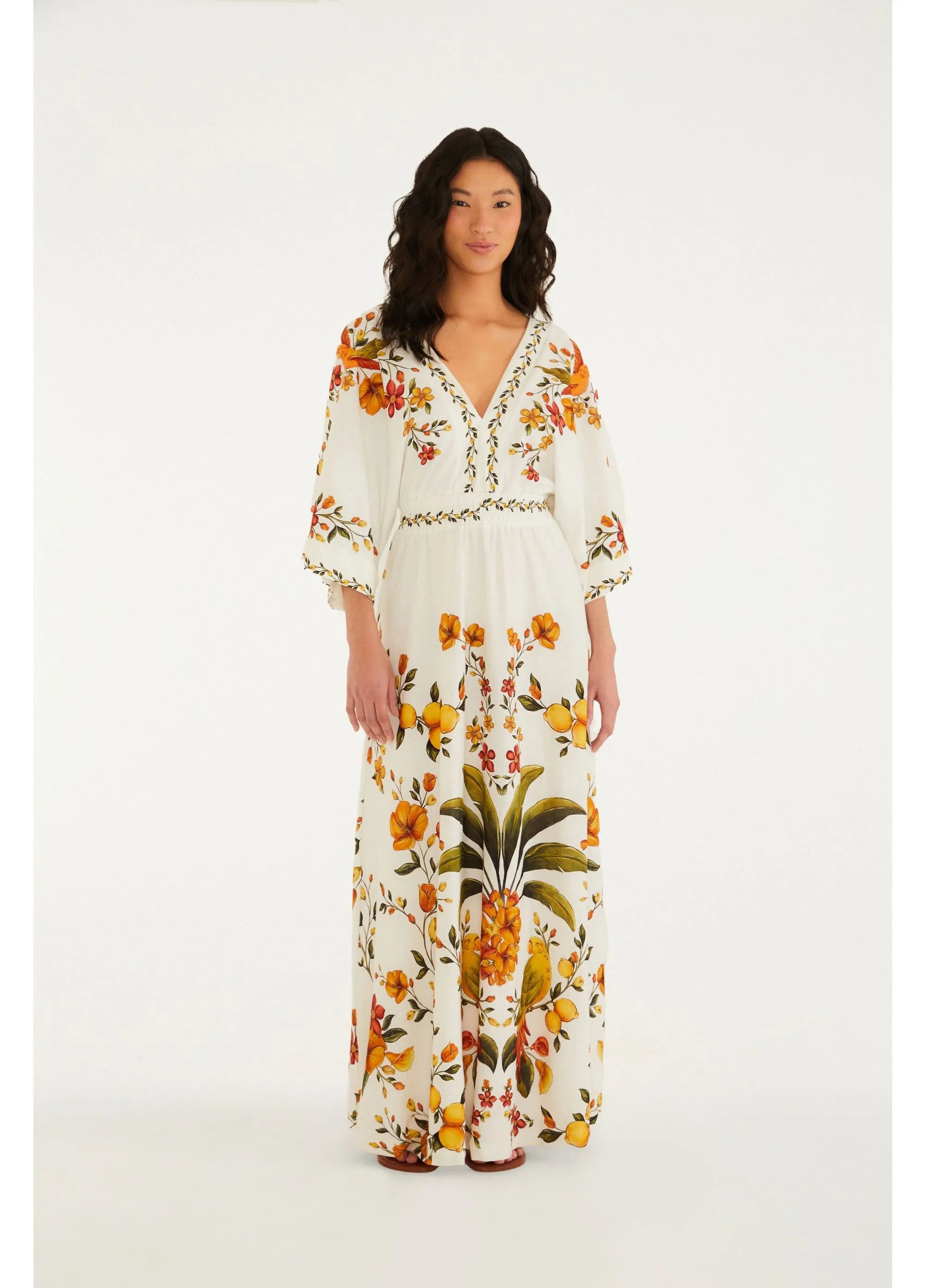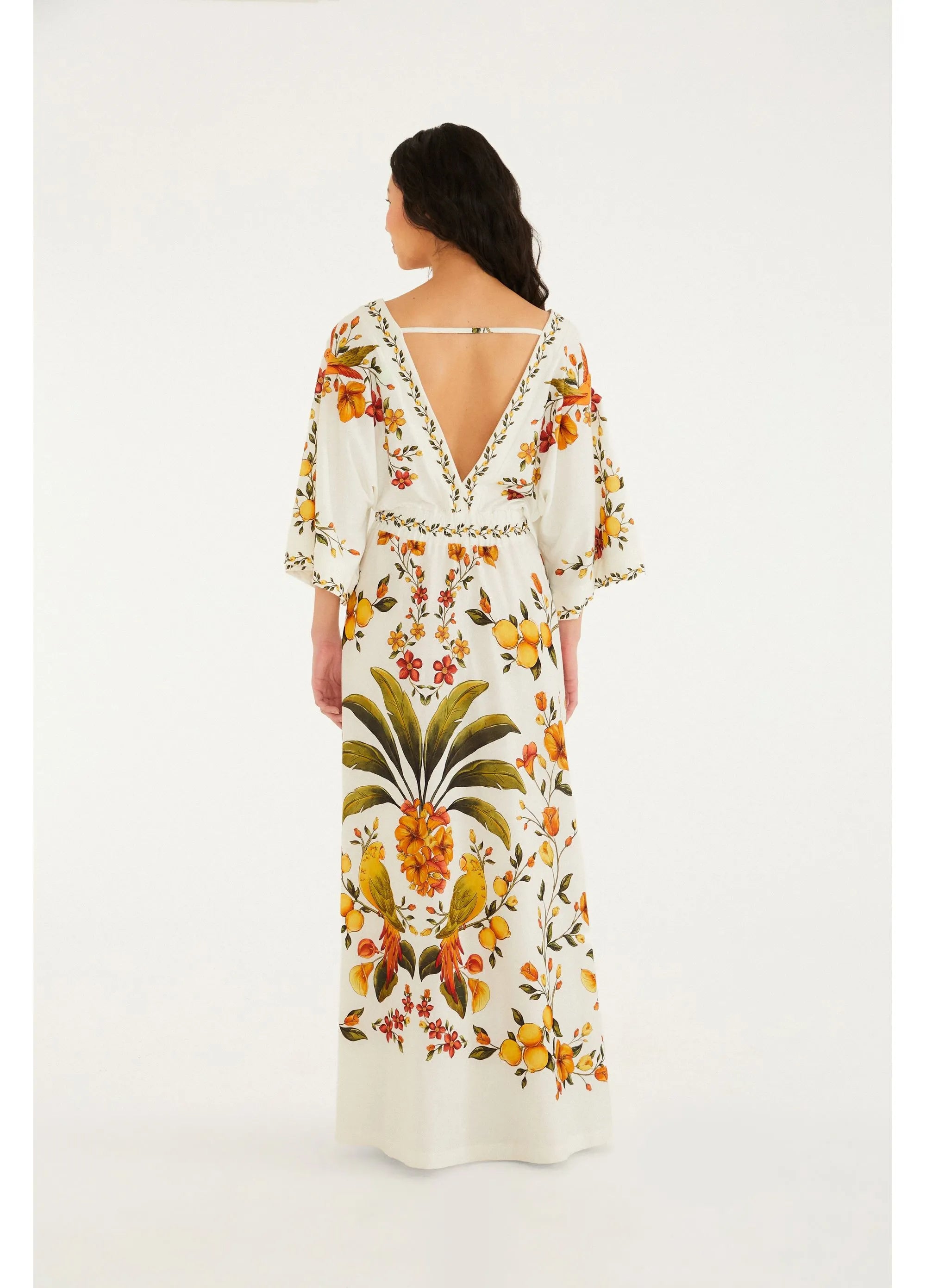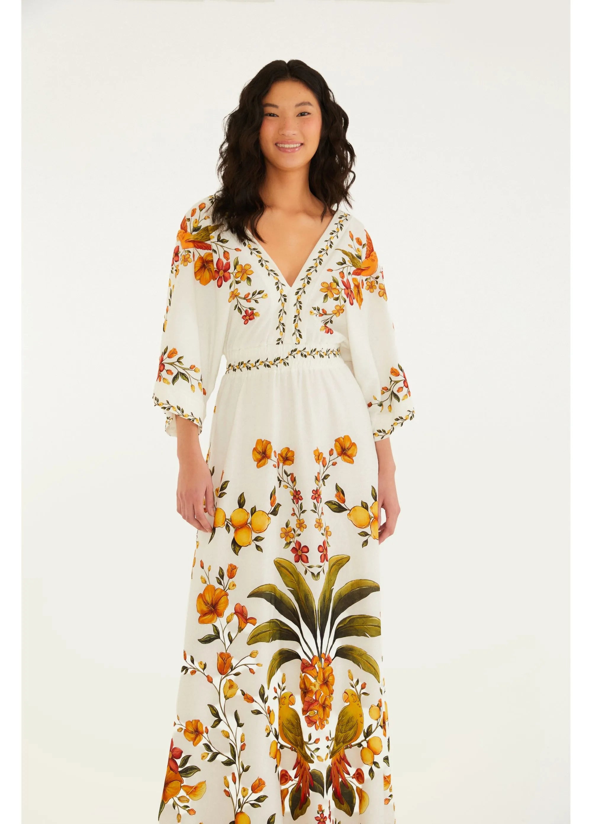 VESTIDO FARM CROPPED LONGO ESTAMPADO BOSQUE CHIC Cor: OFF WHITE Referência: 347016 vestido cropped estampado bosque chic. exibe decote quadrado...