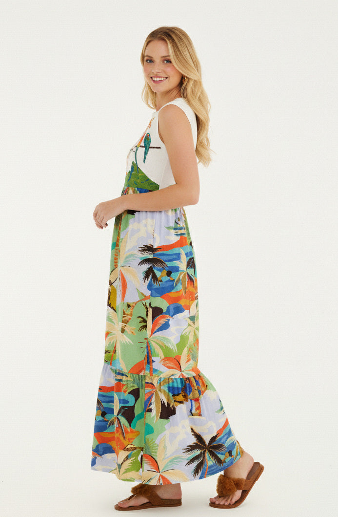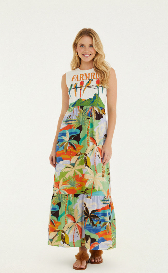 VESTIDO FARM CROPPED REGATA ARARAS GALHO Cor: OFF WHITE Referência: 348406