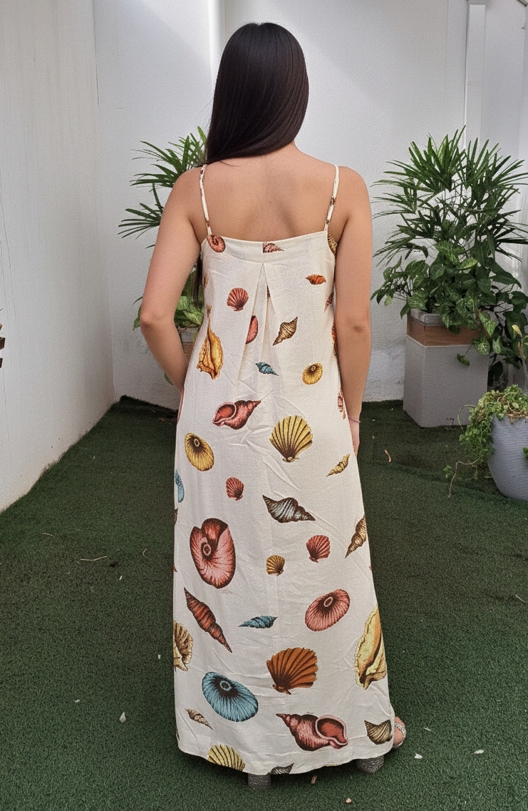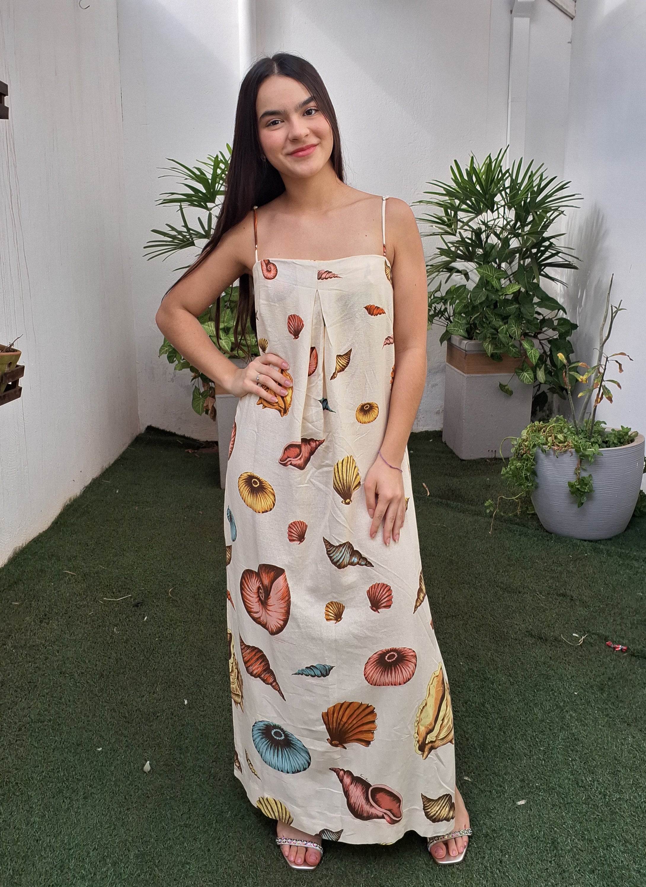 VESTIDO FARM SOUVENIR MAR LONGO BEGE