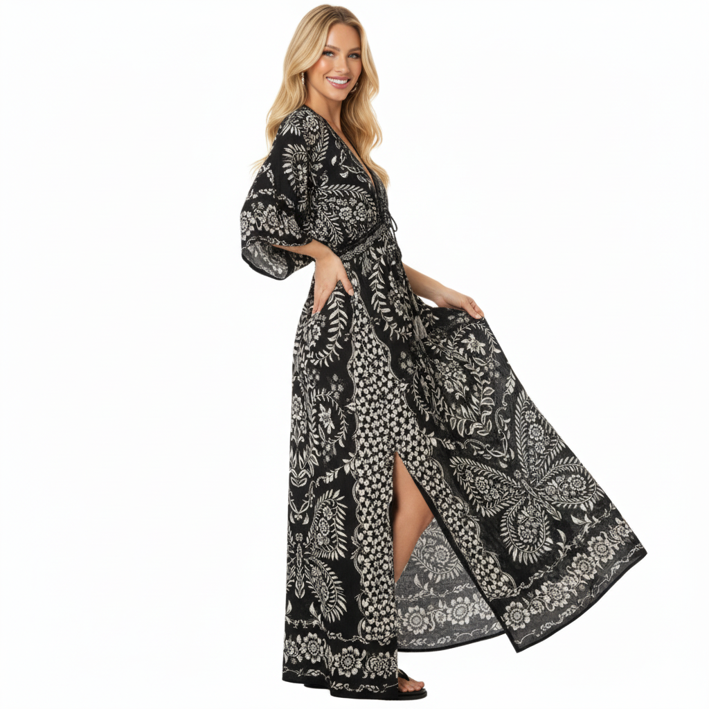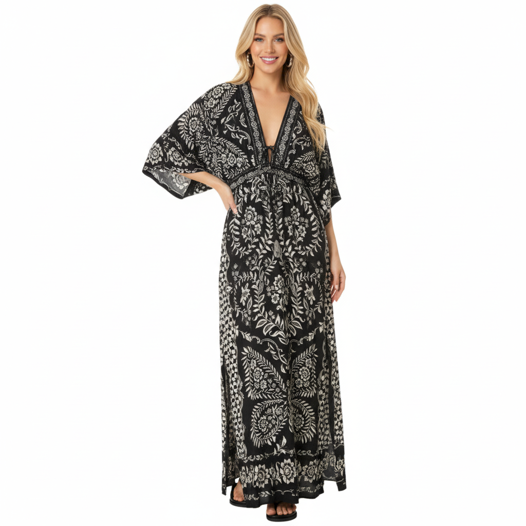 VESTIDO FARM LONGO ESTAMPADO BORBOLINA Cor: PRETO Referência: 337557
