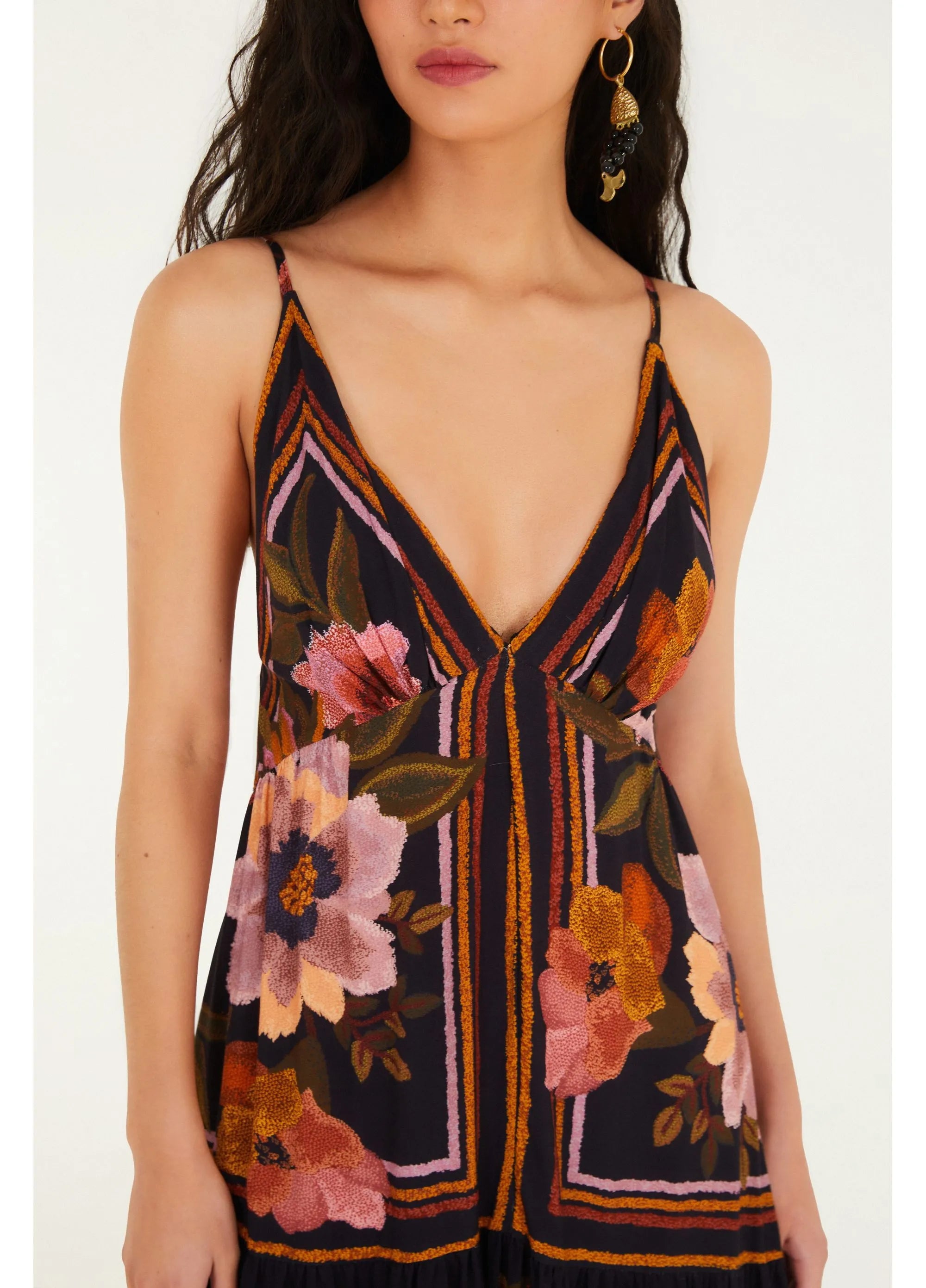 VESTIDO FARM PRETO Cor: PRETO Referência: 346272 vestido estampado floral cleo. apresenta decote em v profundo com alças finas que...