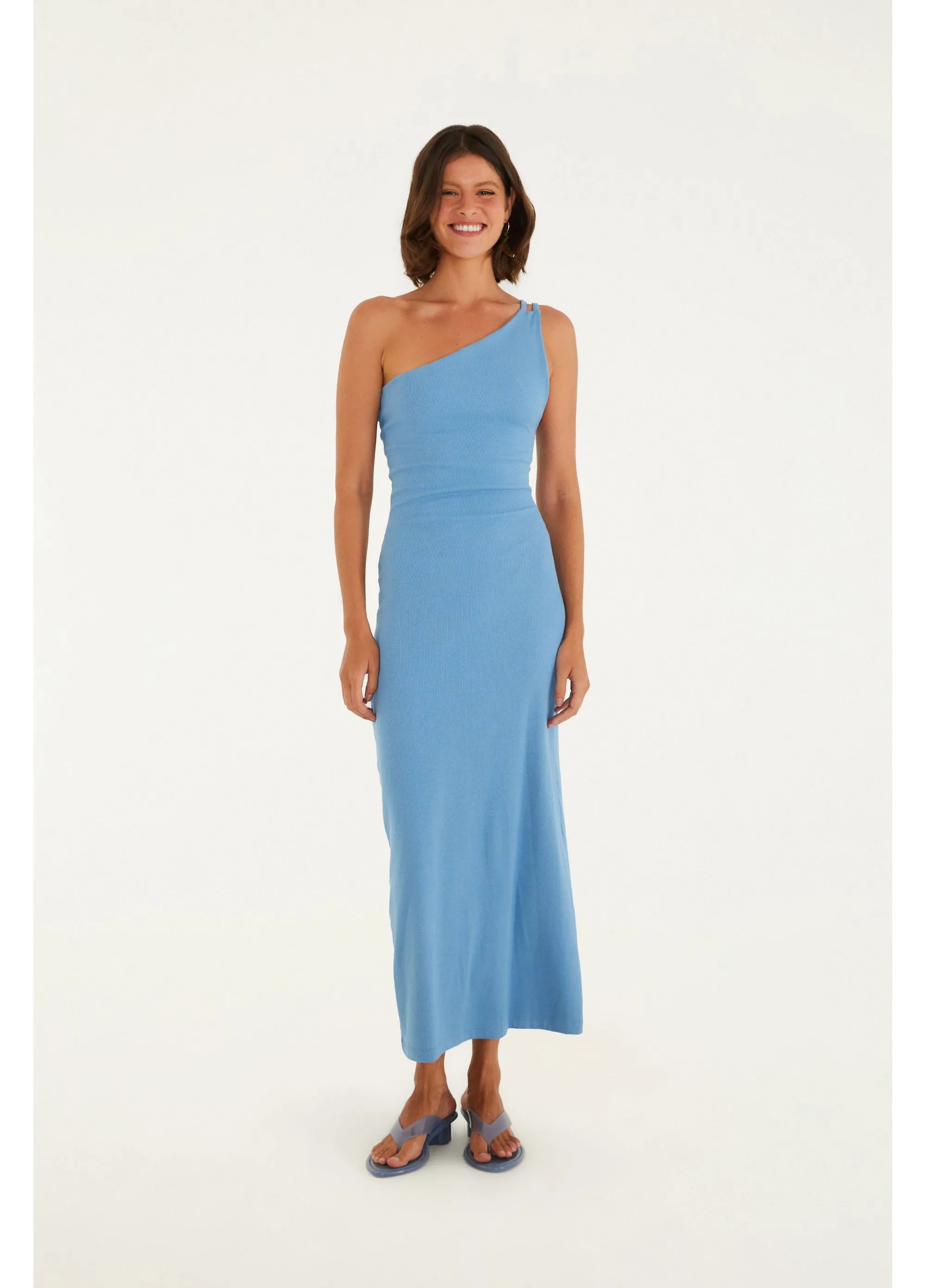 VESTIDO FARM OMBRO SO ROLOTE Cor: AZUL Referência: 347704 vestido ombro só rolote. com design minimalista, apresenta alça única e...