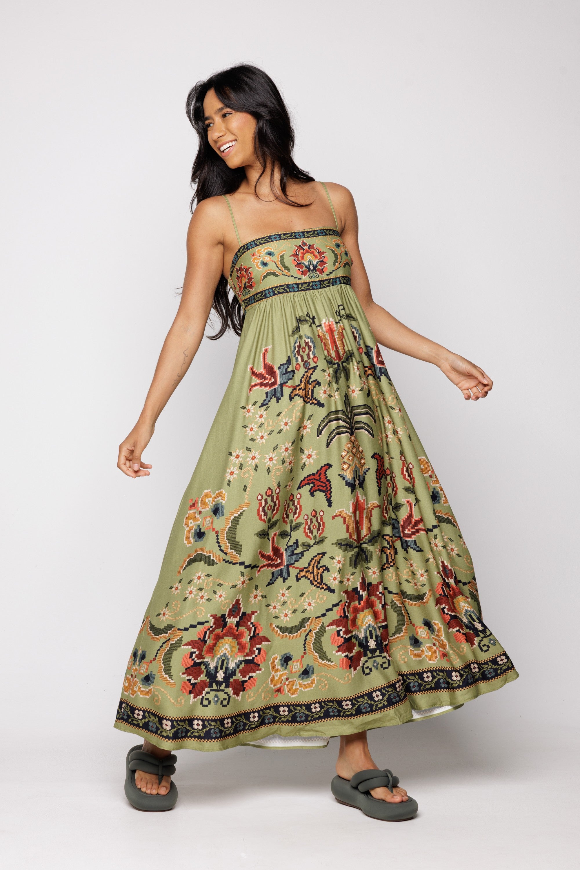 VESTIDO FARM CROPPED ESTAMPADO FLOR DE JARDIM Cor: VERDE Referência: 346611