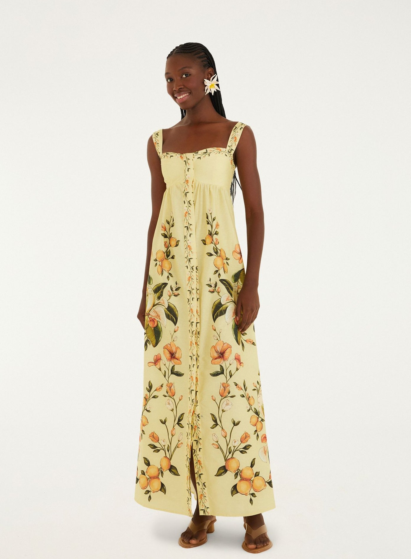 VESTIDO FARM LONGO ALCA ESTAMPADO BOSQUE CHIC