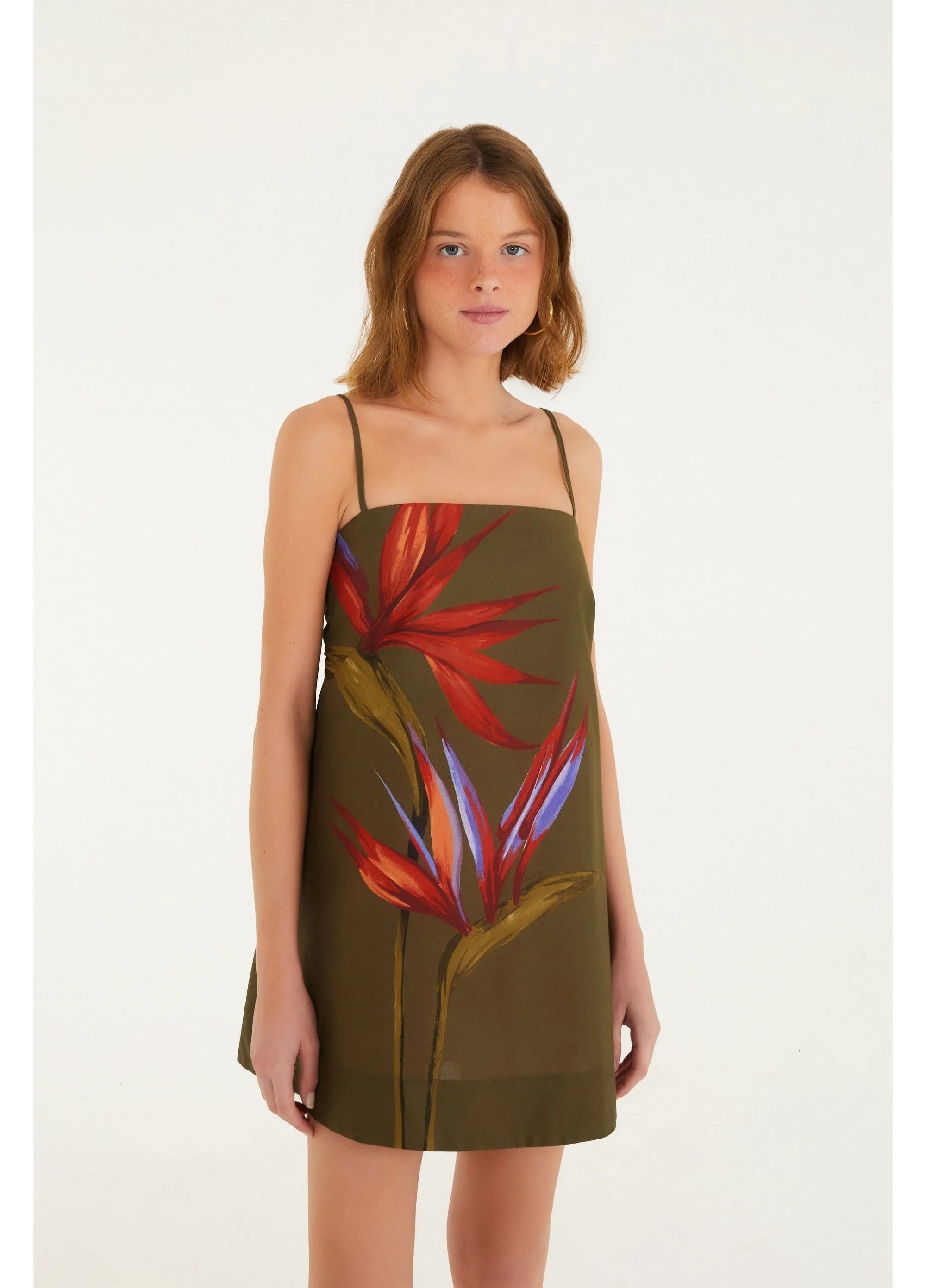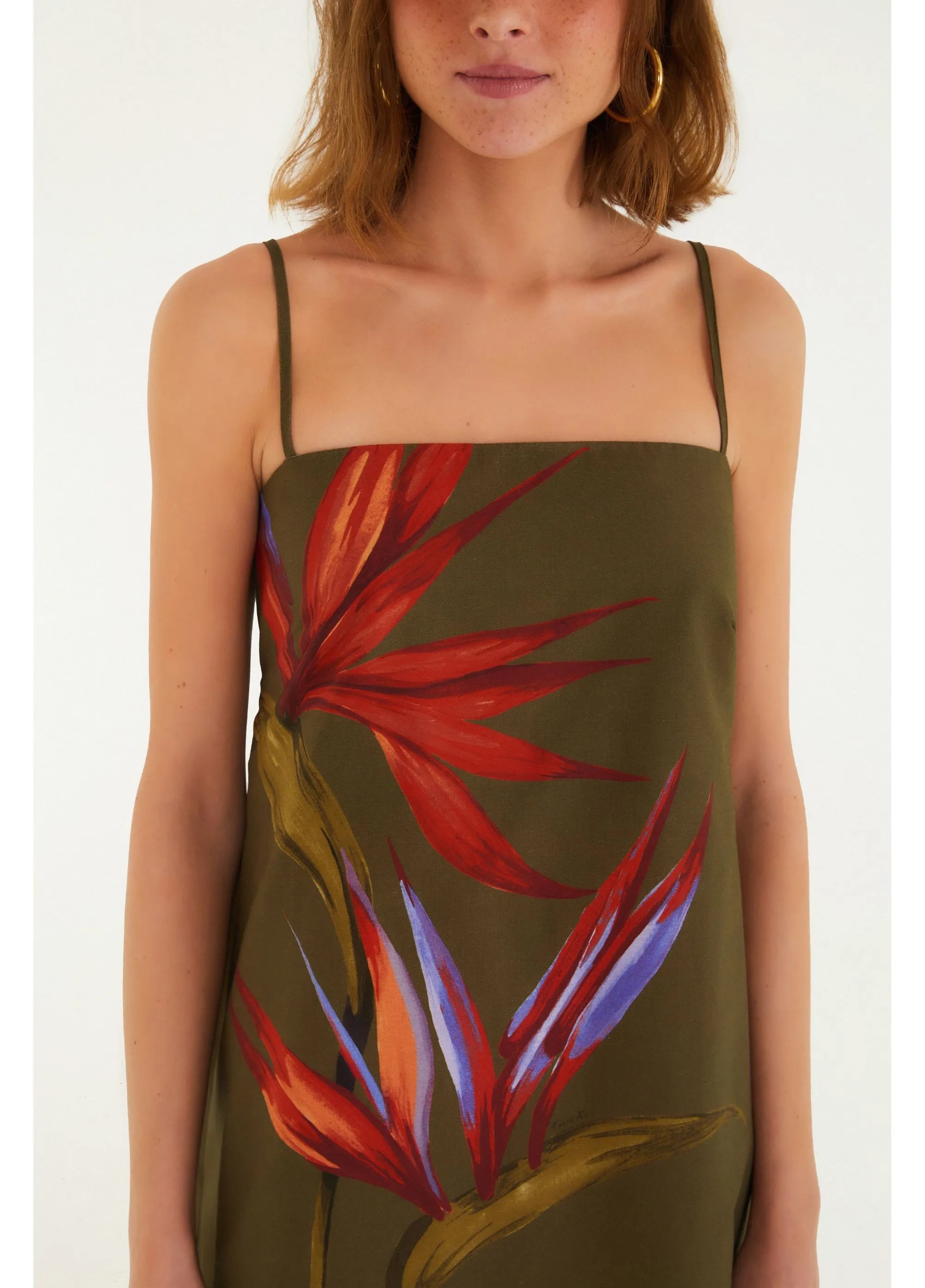 VESTIDO FARM CURTO ESTAMPADO MAXI ESTRELICIA Cor: VERDE ESCURO Referência: 346332 vestido curto estampado maxi estrelícia é a escolha perfeita...