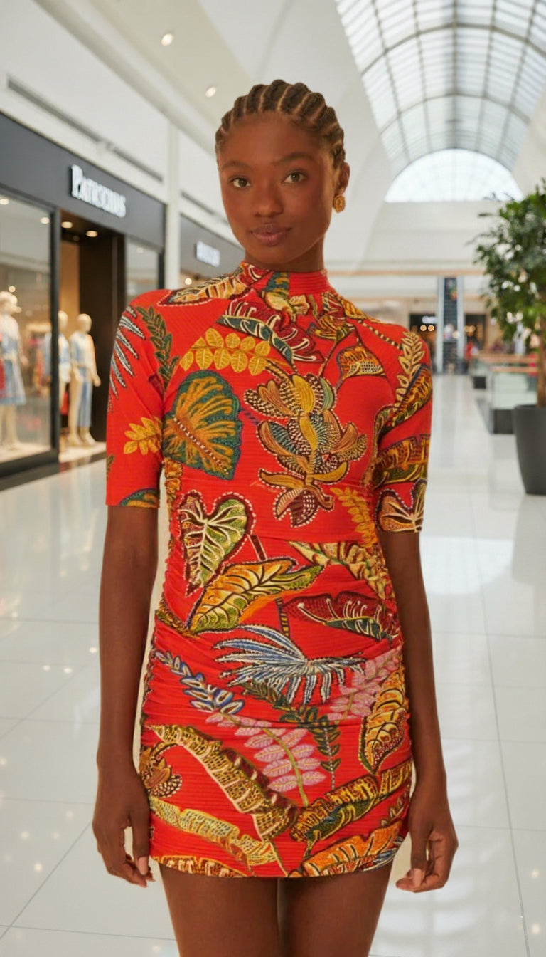 VESTIDO FARM CURTO FOLHAGEM COOL